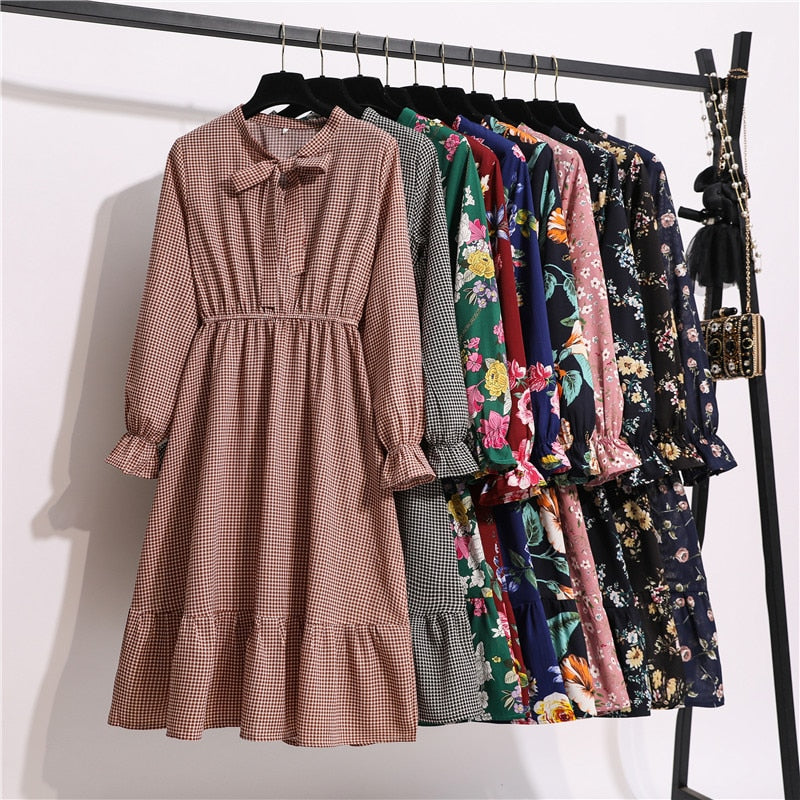 Lizakosht 11 Style Beautiful Fashion Summer Women Long Sleeve Dress Retro Collar Casual High Waist Dresses Floral Print Chiffon Clothing