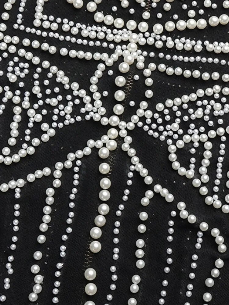 Lizakosht - New Arrival Women Sexy Designer Beading Mesh Long Sleeve T-Shirts Ladies Black Nude Designer Tees Tops