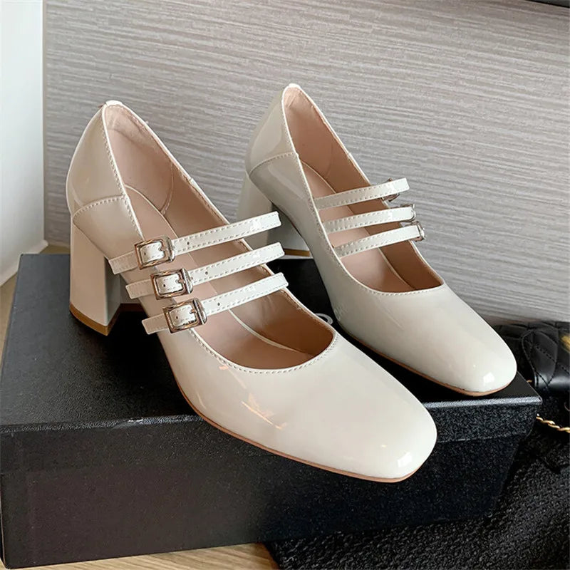 Lizakosht Spring/summer Mary Jane Shoes Patent Leather Woman Shoes Square Toe Thick Heel Shoes Women Buckle Strap High Heels Pumps