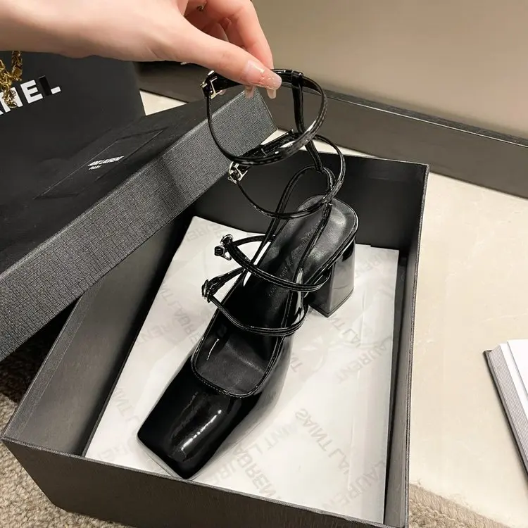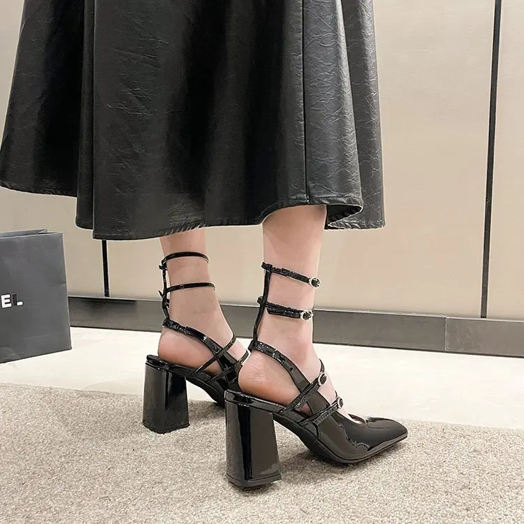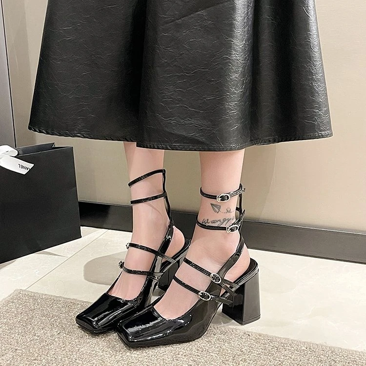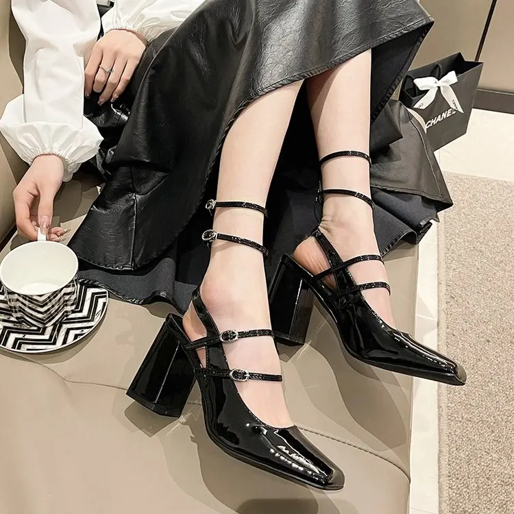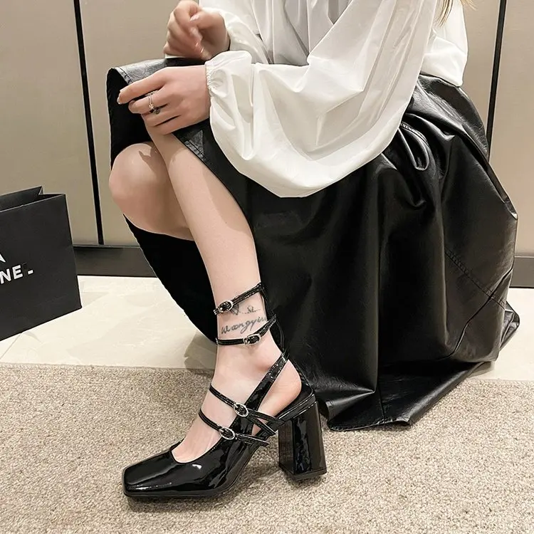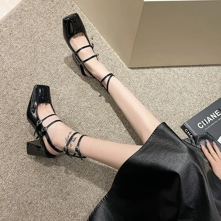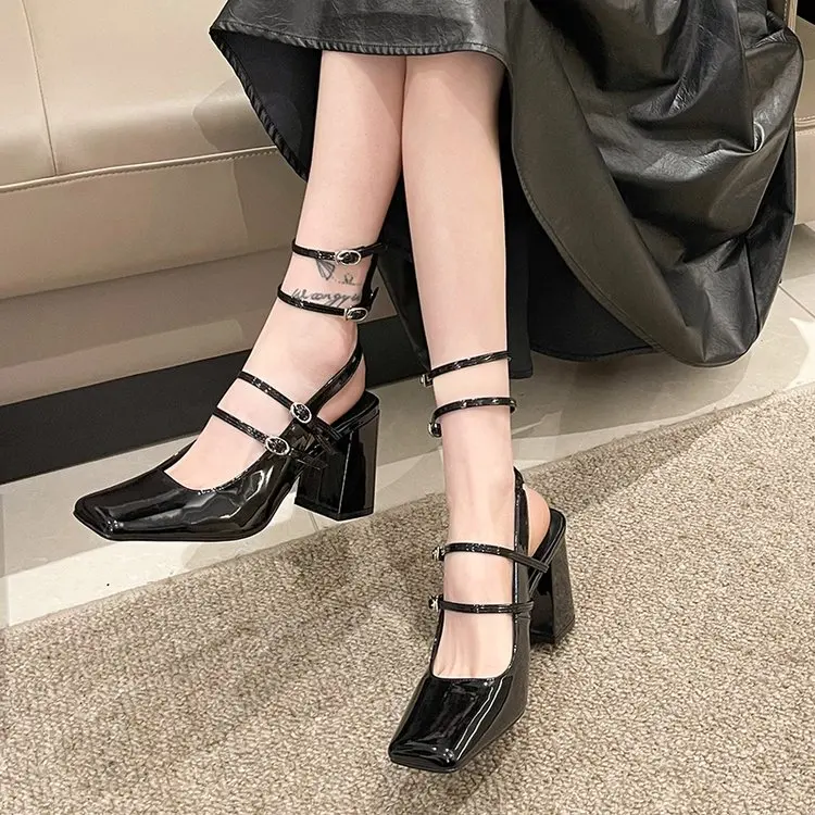 Lizakosht Fashion Women Pumps Mary Jane Heels Chunky Strappy Black Square Toe Heels Lolita Slingback Heels Cute Shoes Womens Shoes
