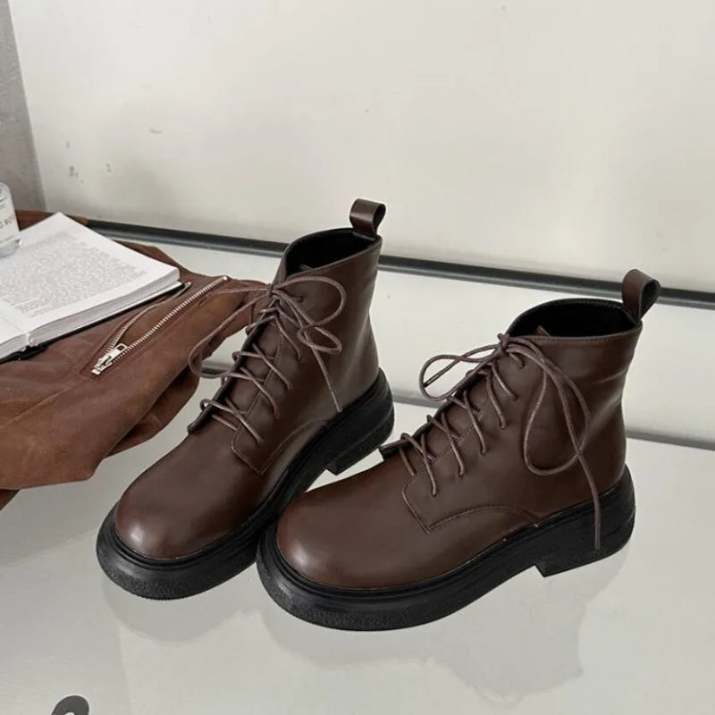 Lizakosht Spring Autumn Women Ankle Boot Fashion Round Toe Platform Ladies Short Boots Low Heel Outdoor Lace Up Boots