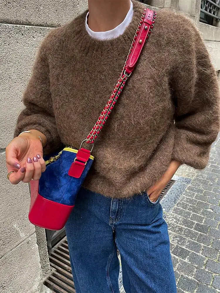Lizakosht Mohair O-neck Knitted Soft Women Pullover Long Sleeve Oversized Loose Warm Vintage Sweater Autumn Winter Chic Casual Knitwears
