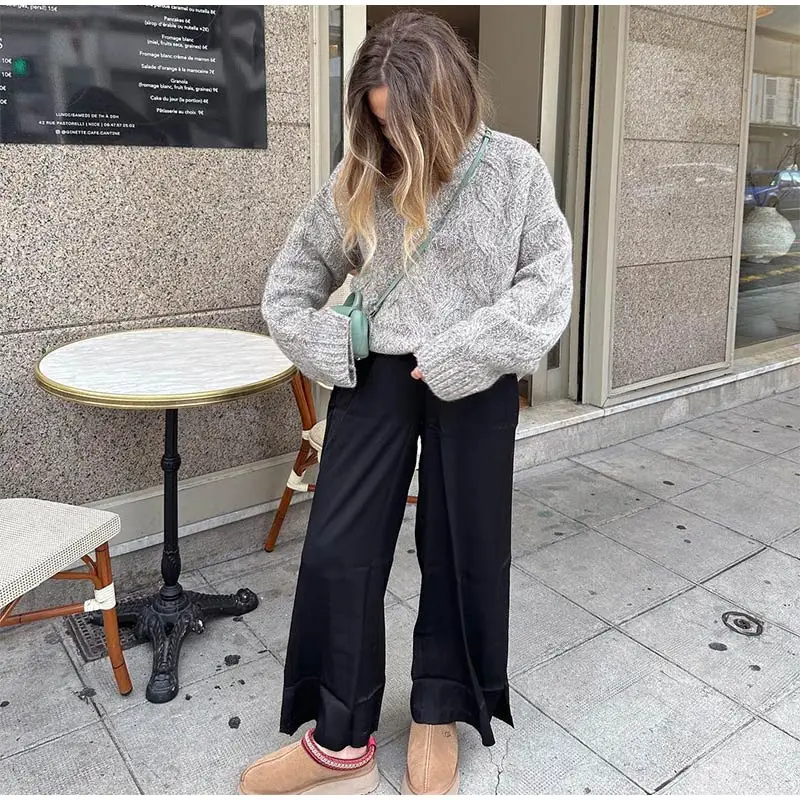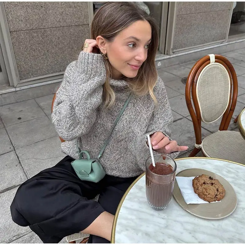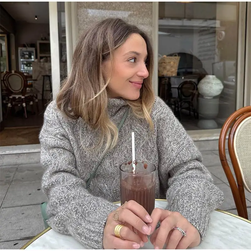 Lizakosht Grey Ribbed Knit Turtleneck Casual Basic Jumper Long Sleeve Loose Oversize Female Pullover Autumn Winter Chic Retro Knitwear Top