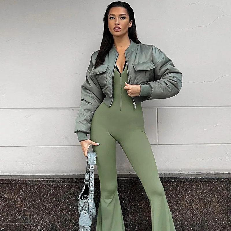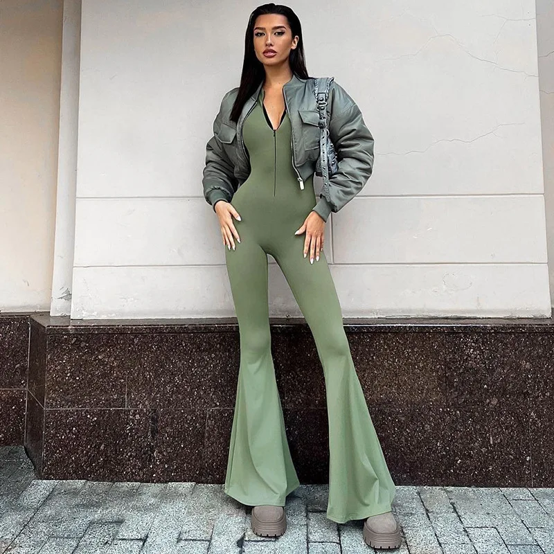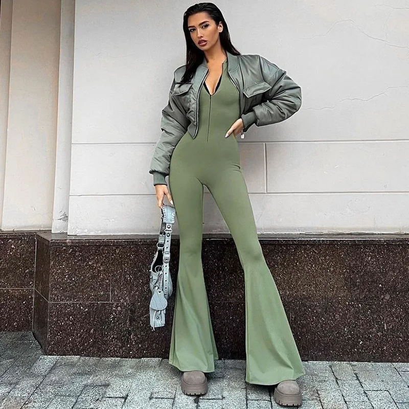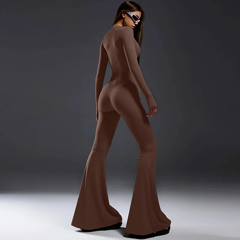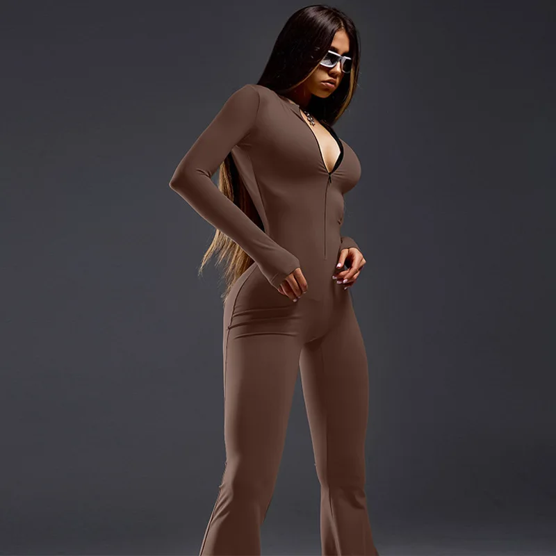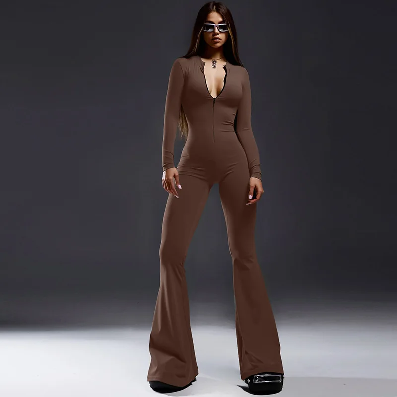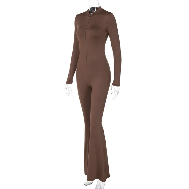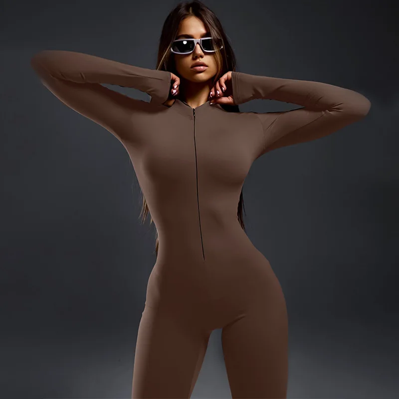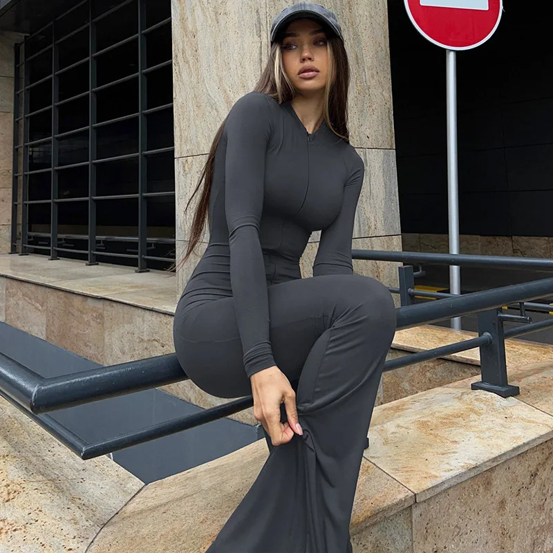 Lizakosht Fashion Long Sleeve Skinny Sexy Jumpsuits Women Overalls Autumn Winter New Solid Zipper Sporty Fitness Sexy Jumpsuits