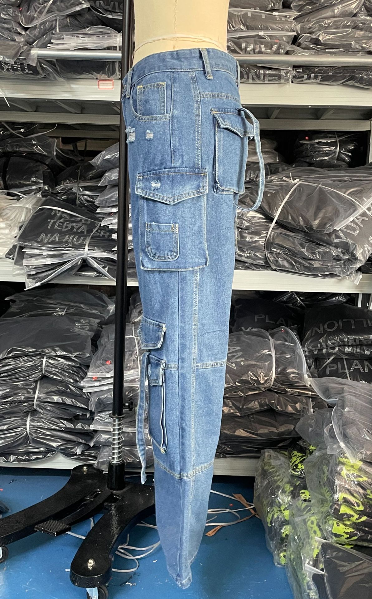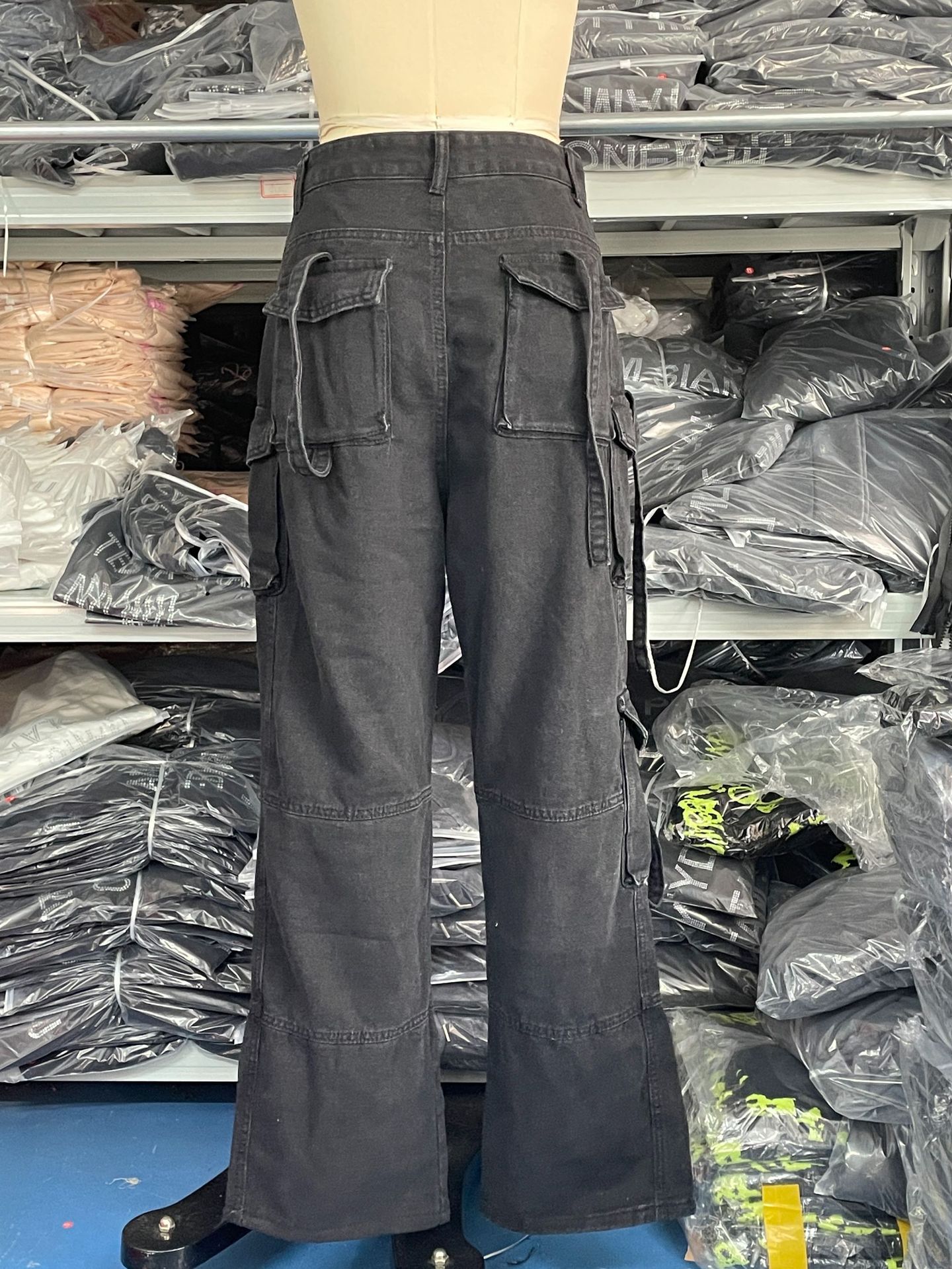 LIZAKOSHT  -  Cross-border European and American New Personalized Multi-pocket Wide-leg Overalls for Women in Autumn, Slim and Versatile Straight Jeans for Women