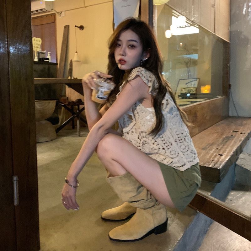 LIZAKOSHT - Women's Rhinestone Decor Hollow Out Button Front Ruffle Hem Cardigan, Boho Butterfly Sleeve Round Neck Knitwear for Summer, Fashion Women's Knit Clothing for Daily Wear
