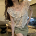 LIZAKOSHT  -  Women's Rhinestone Decor Hollow Out Button Front Ruffle Hem Cardigan, Boho Butterfly Sleeve Round Neck Knitwear for Summer, Fashion Women's Knit Clothing for Daily Wear