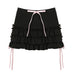 LIZAKOSHT - Women's Bow Decor Frill Trim Tiered Layer Skirt, Solid Color Drop Waist Mini Skirt, Ladies Summer Bottoms for Party Club Dating