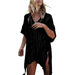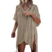 LIZAKOSHT - Women's Hollow Out Asymmetrical Split Hem Crochet Cover Up, Boho V Neck Batwing Sleeve Lace Up Fringe Decor Cover Up, Summer Clothes for Beach Vacation