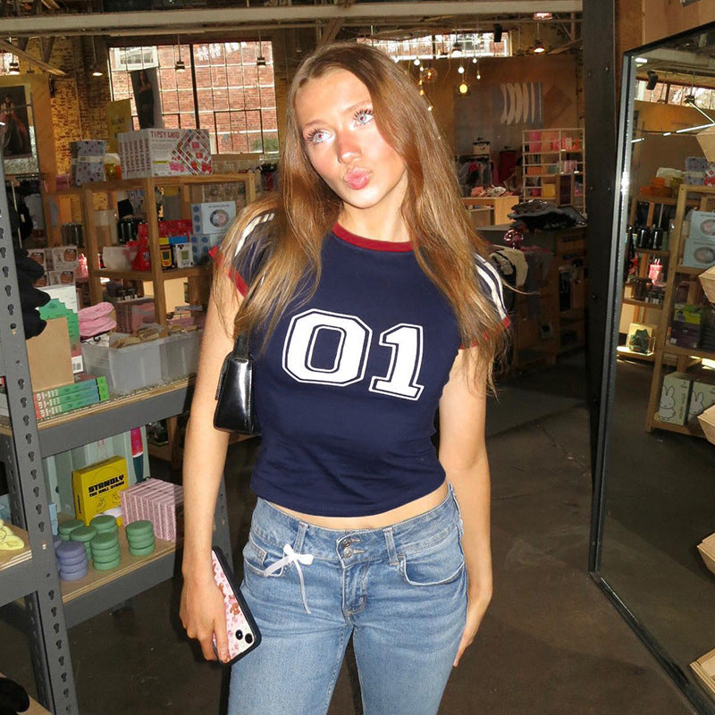 LIZAKOSHT - American Street Style Digital Print Contrast Color Short-sleeved T-shirt for Women