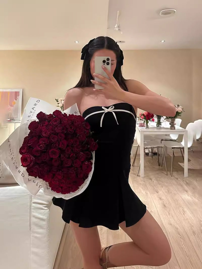 LIZAKOSHT  -  Stylish Impression Strapless Ruffled Skater Dress