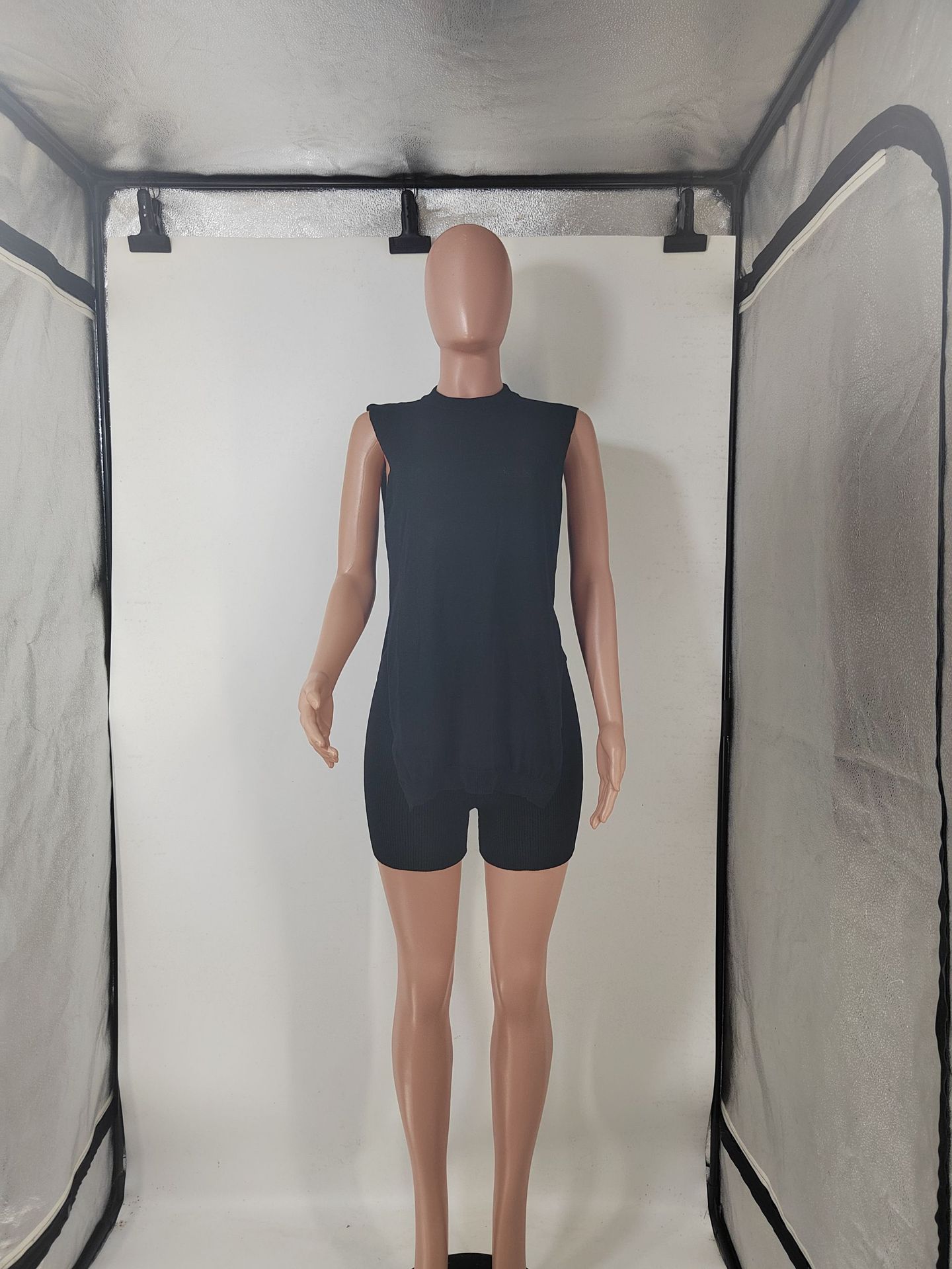 LIZAKOSHT  -  Womens Summer Knit Sweater Set Sleeveless Tunic Top Matching Shorts 2 Piece Outfits Trendy Beach Vacation Set