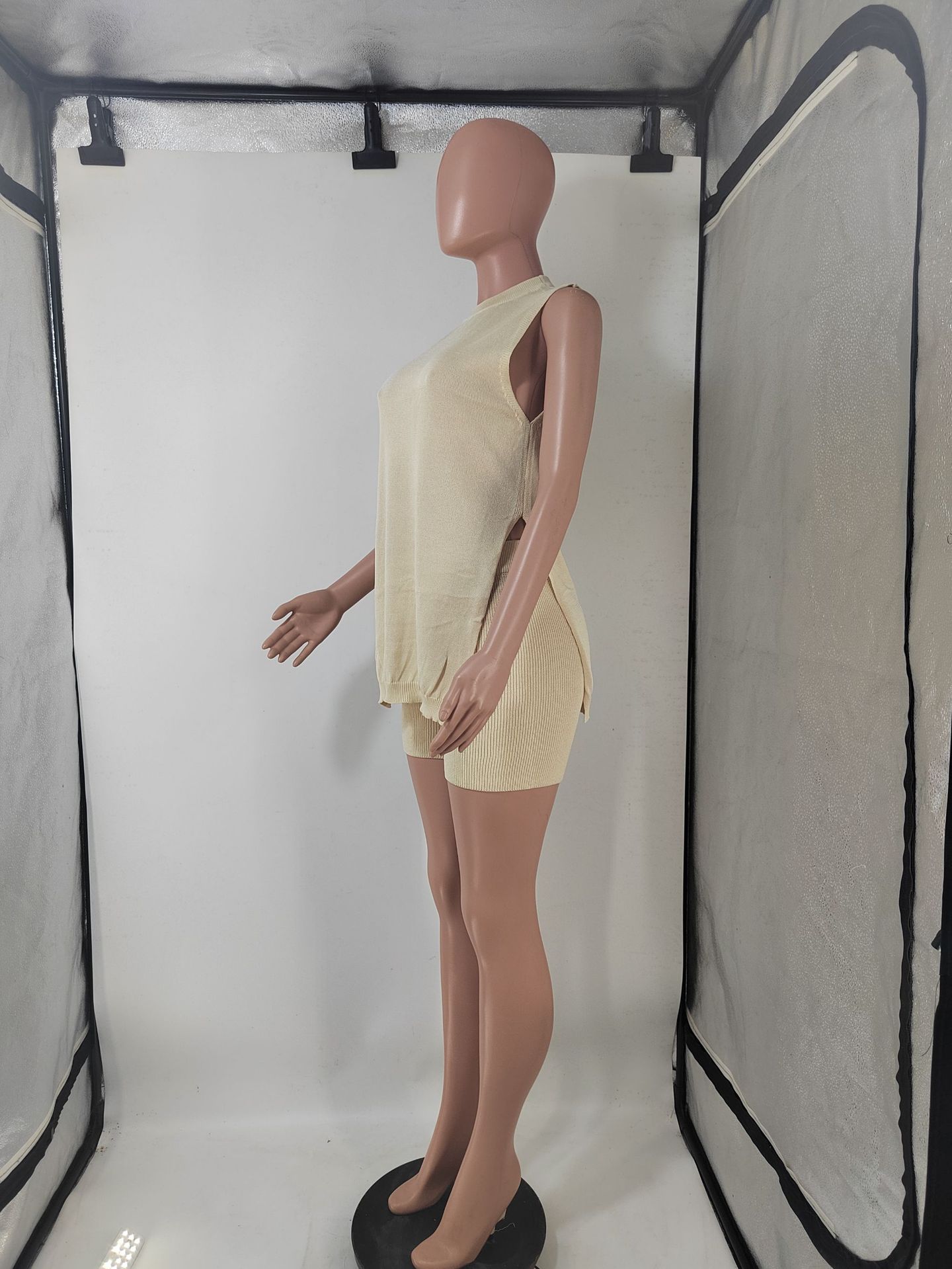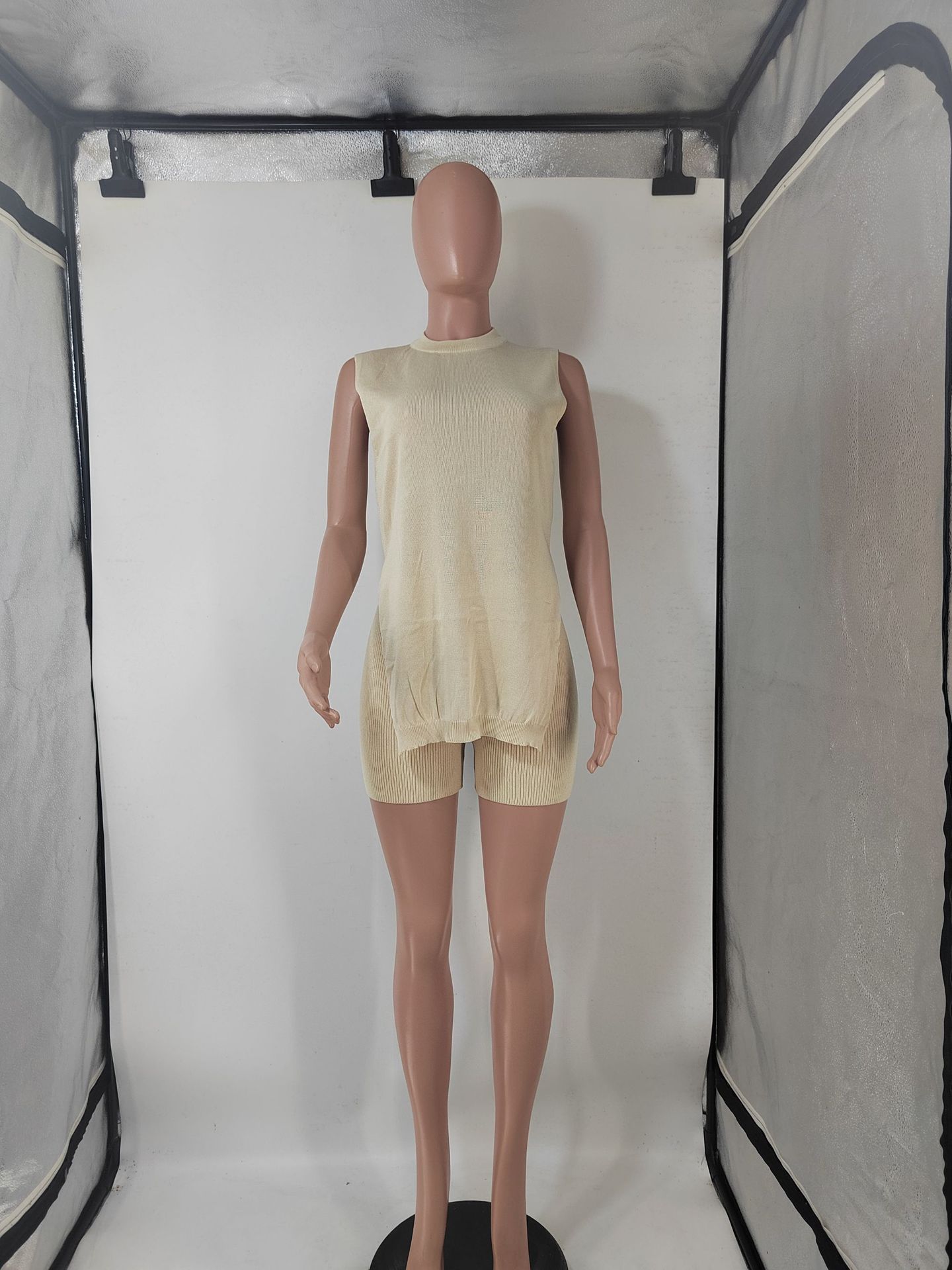 LIZAKOSHT - Womens Summer Knit Sweater Set Sleeveless Tunic Top Matching Shorts 2 Piece Outfits Trendy Beach Vacation Set