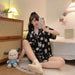 LIZAKOSHT  -  Women's All Over Print Elastic Waist Pyjama Set, Button Front Top & Bow Decor Shorts, Summer Sleepwear, Pajama Sets Women, Nightwear Set for Women