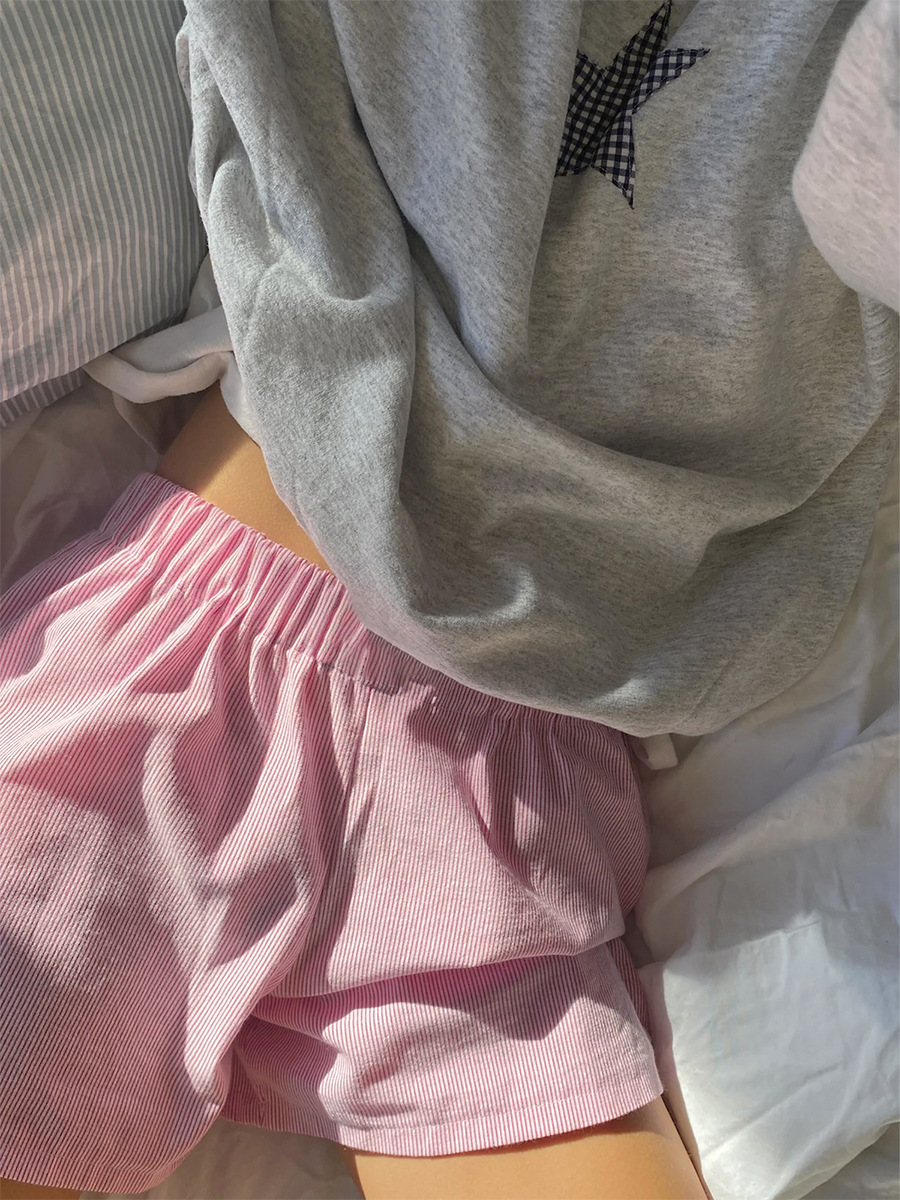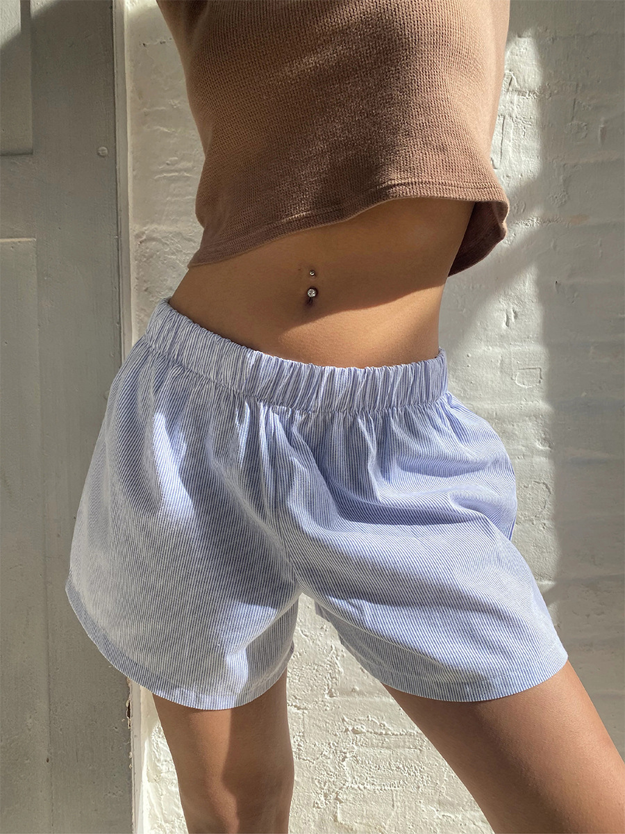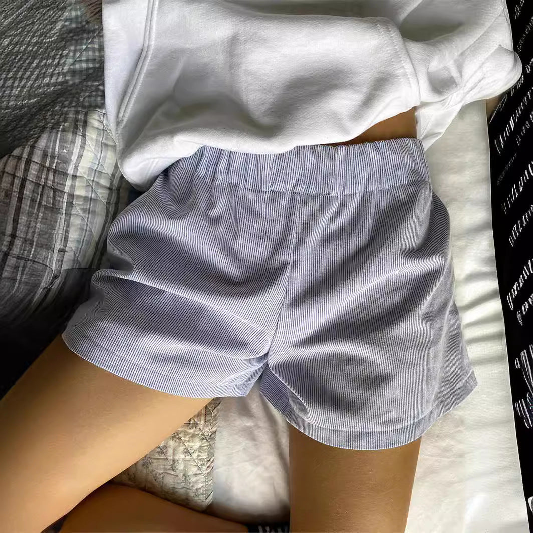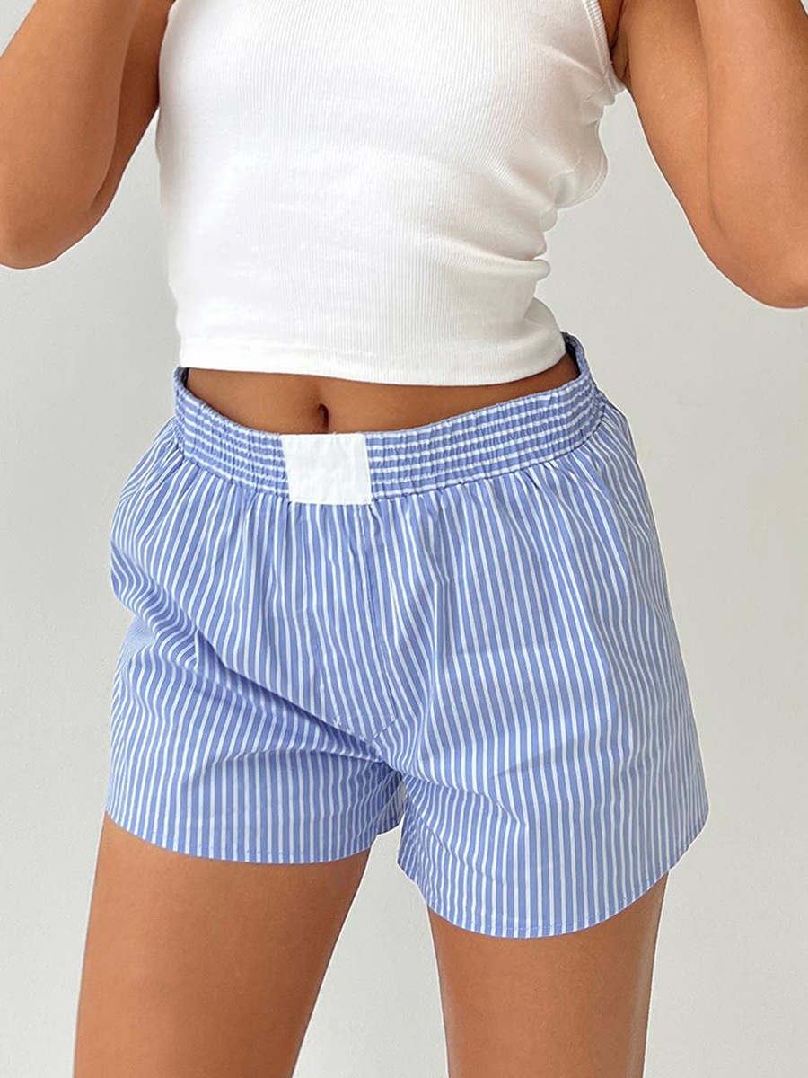 LIZAKOSHT - Women's Striped Print Patched High Waist Shorts, Casual Comfy Elastic Waist Shorts for Summer, Womens Shorts, Ladies Bottoms for Daily Wear