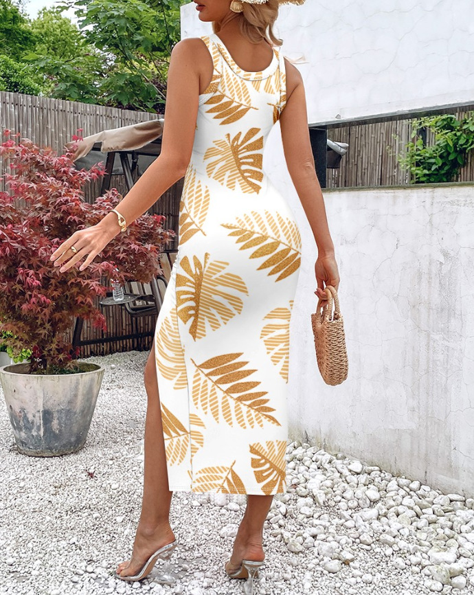 LIZAKOSHT  -  Chicme Ribbed Sleeveless Drawstring Ruched High Slit Dress long dress