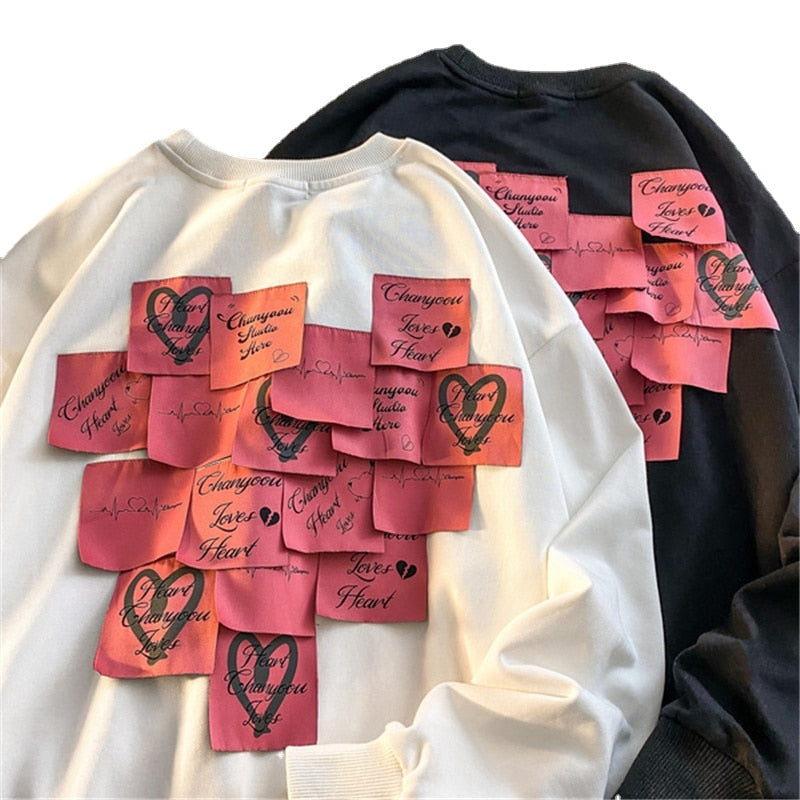 Fashion sweater women's new design sense niche trendy brand stickers y2k Top female loose Jumper long-sleeved Pullovers