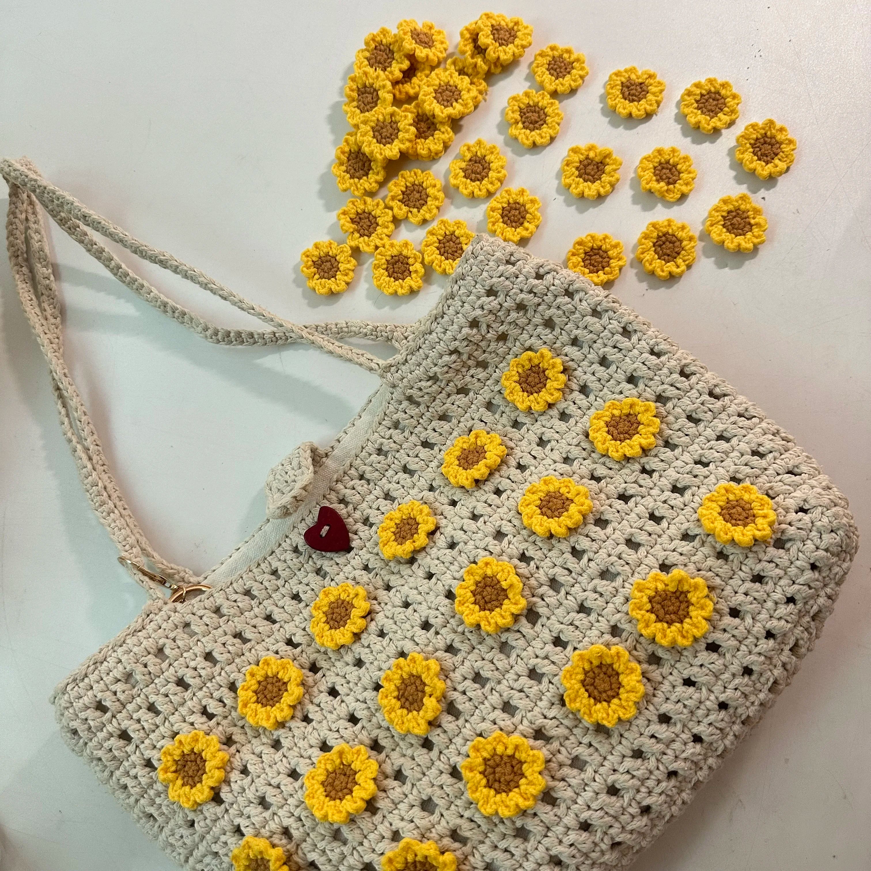 Theme: 3CM Hand Knitt Crochet Sunflower 3D Flower