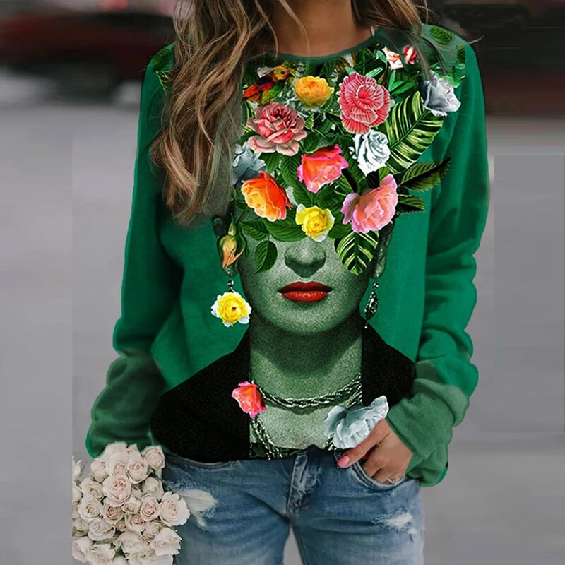 Lizakosht Printed Loose Casual Sweatshirts Women Autumn Long Sleeve Round Neck Hoodie Tops