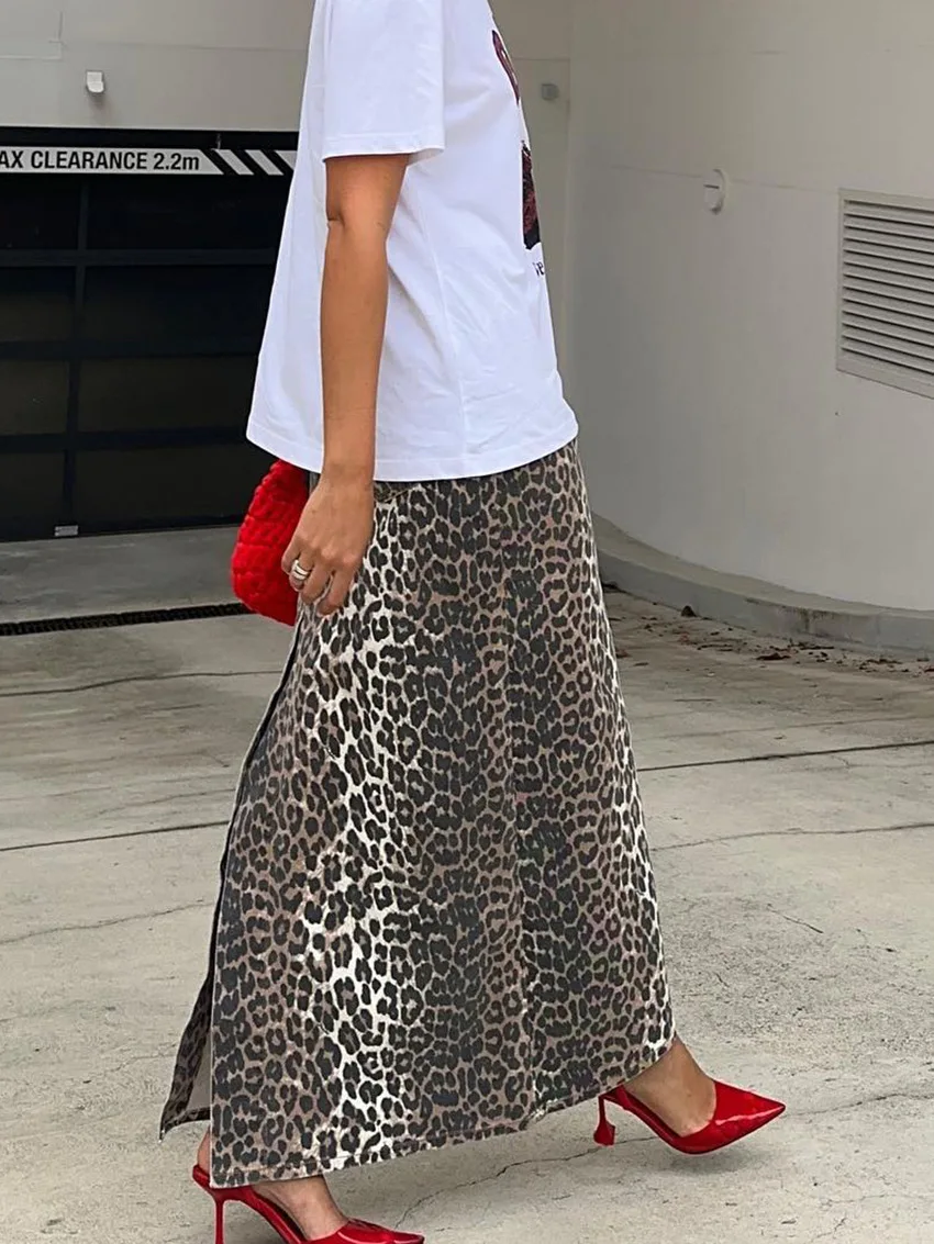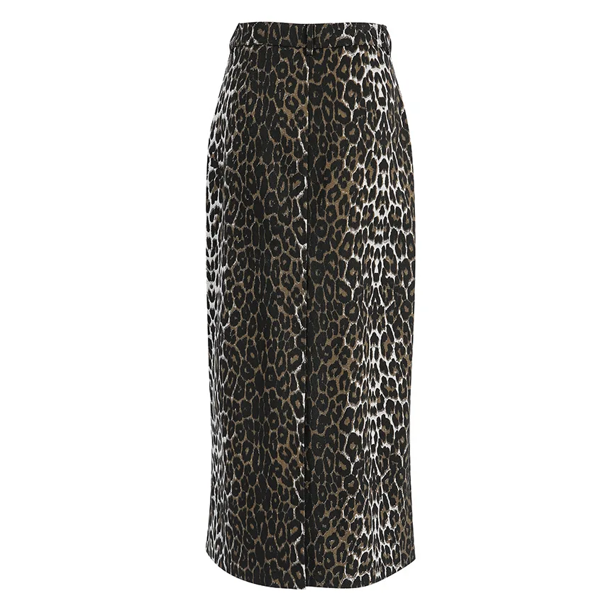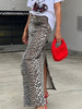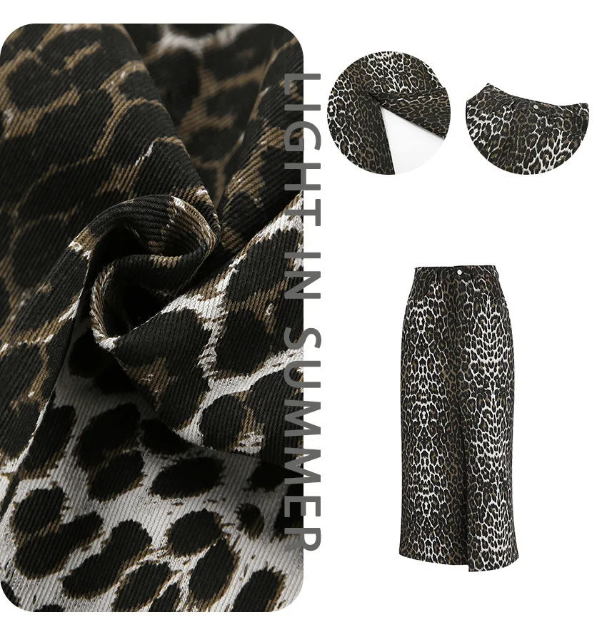 LIZAKOSHT - 100% Cotton Fashion Split Skirt Women's Leopard Print Slim Fit Long Skirt Summer Office Lady Loose Straight Skirt