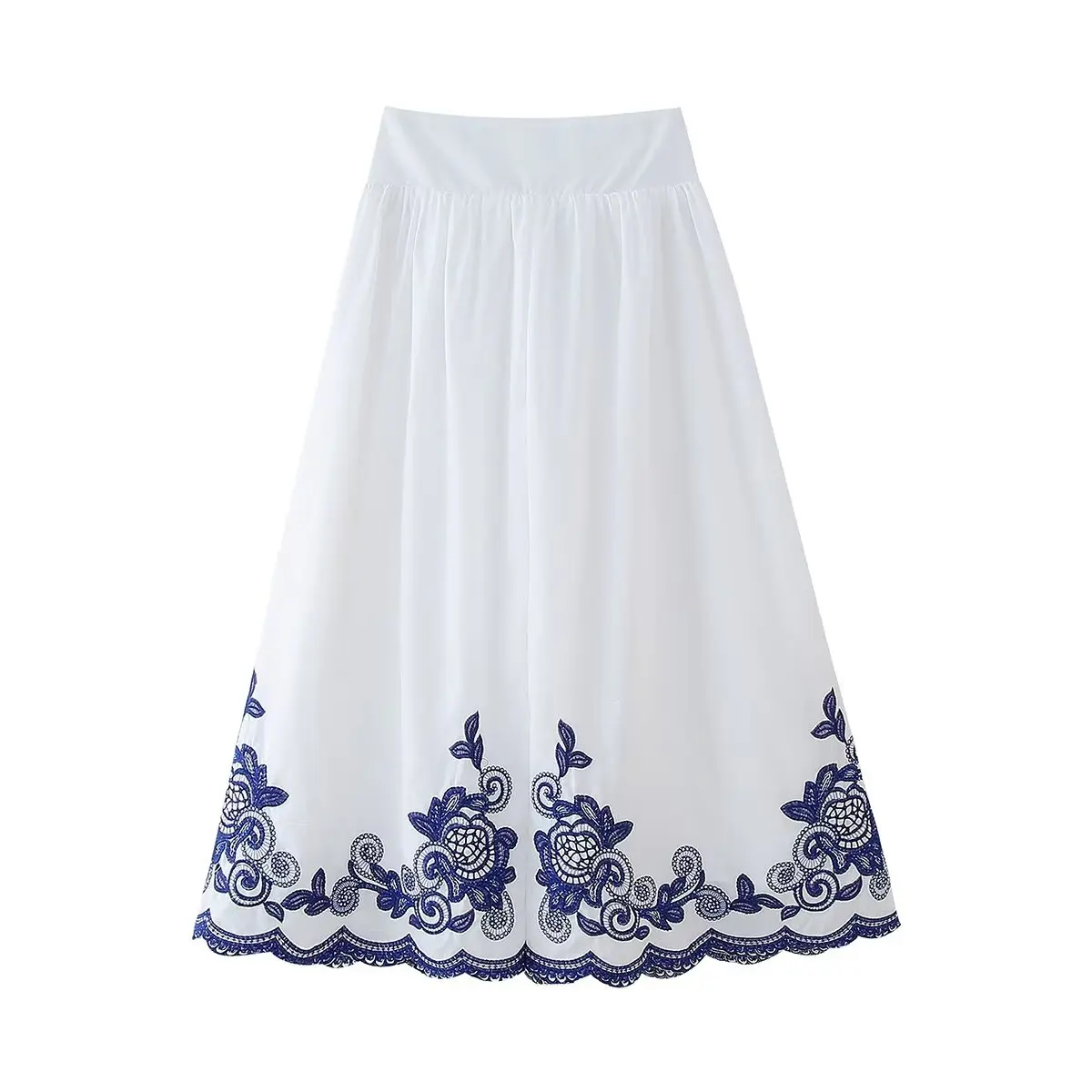 2024 Women Contrast Floral Embroidery White Skirt