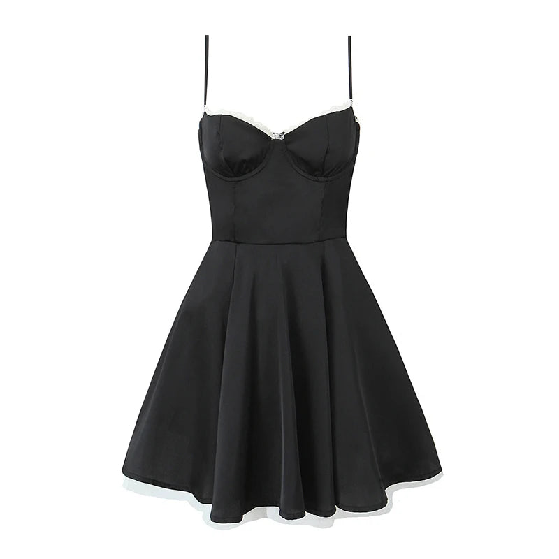LIZAKOSHT - 2024 Women Lace Patchwork Satin Sling Mini Dresses Summer Sexy Elegant Birthday Party Dress Girls Pretty Clothing