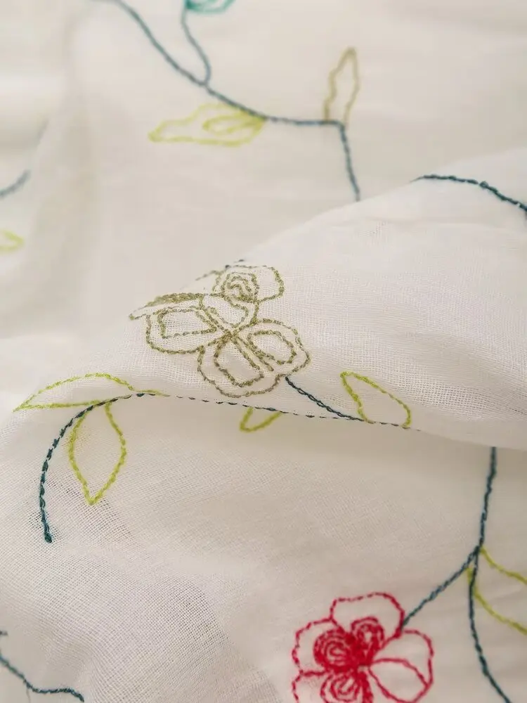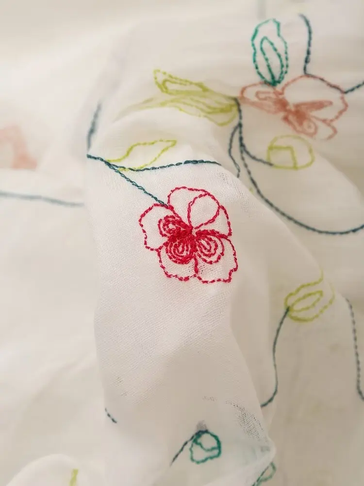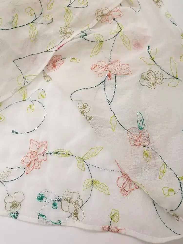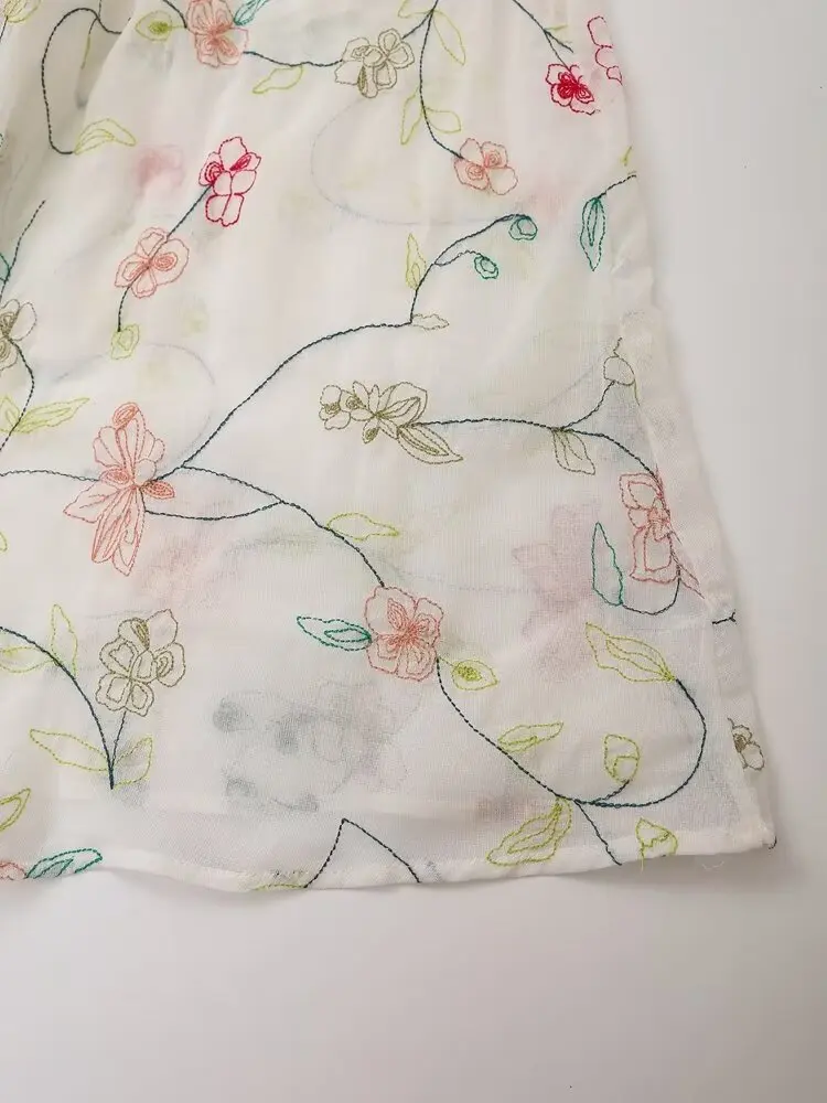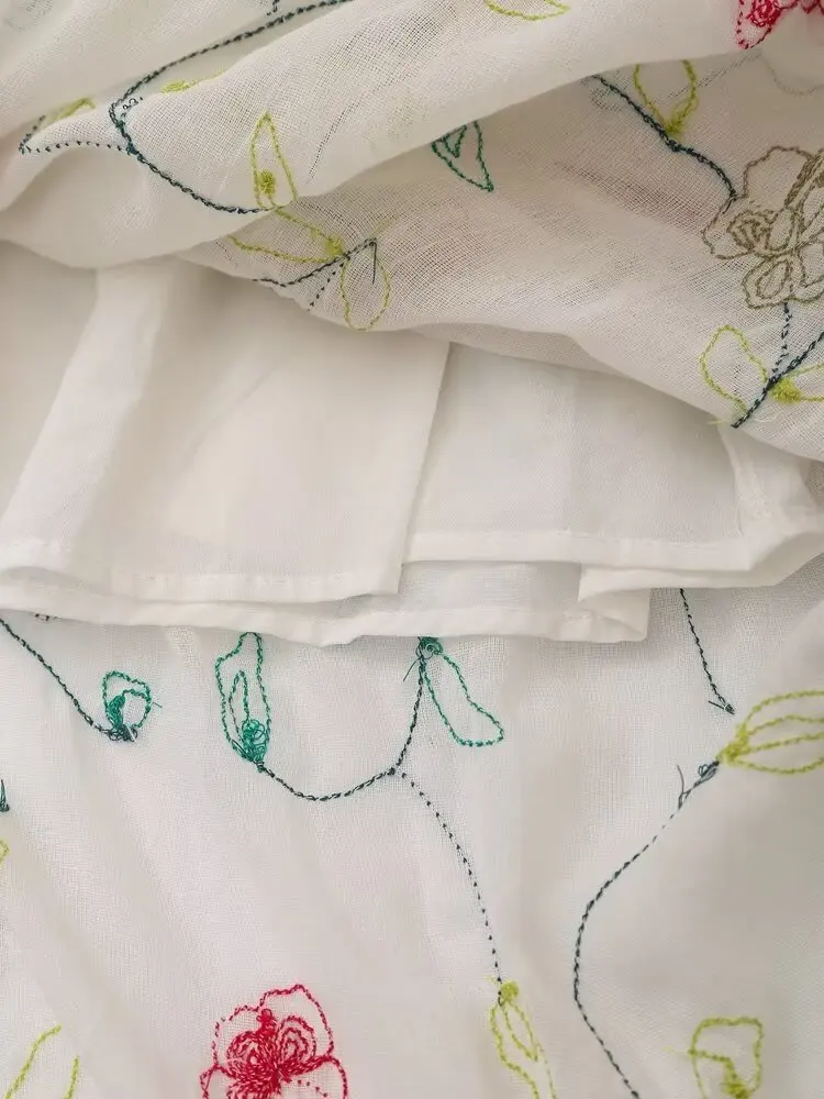 2024 Women Vintage Elastic High Waist Floral Embroidery Midi Skirt