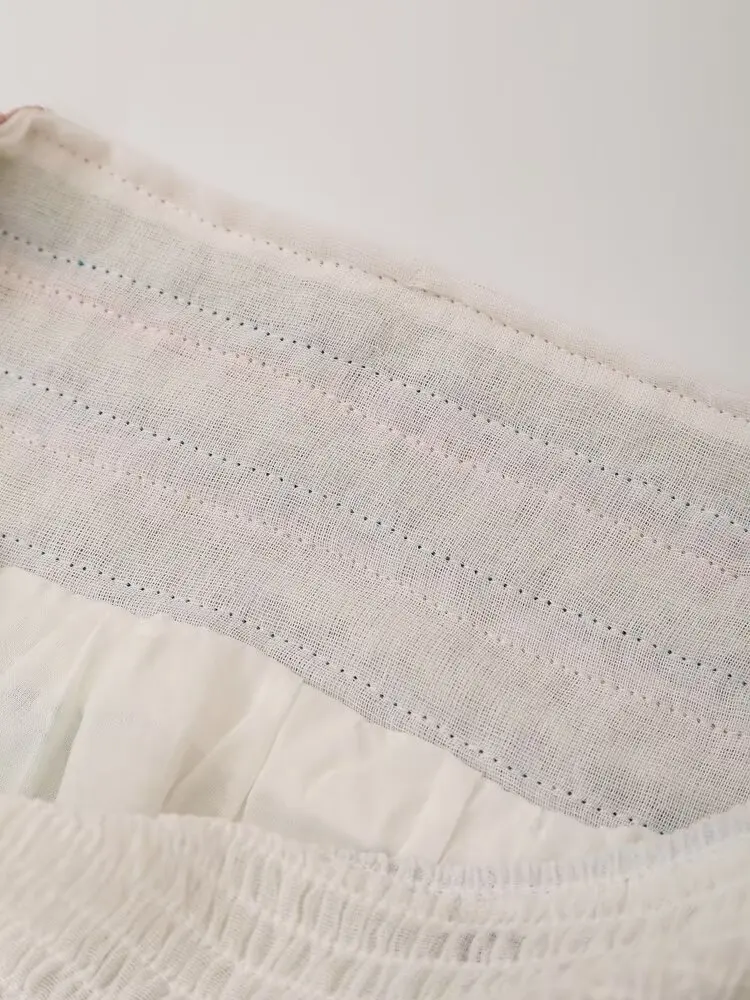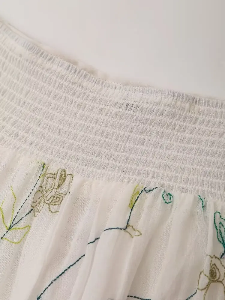 LIZAKOSHT - 2024 Women Vintage Elastic High Waist Floral Embroidery Midi Skirt Holiday Summer Boho Skirts