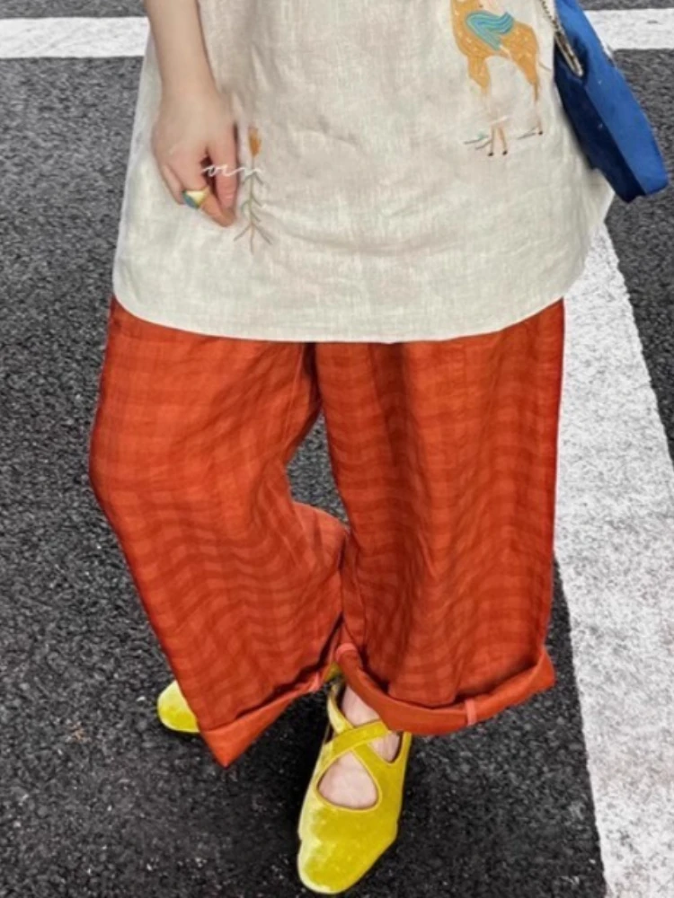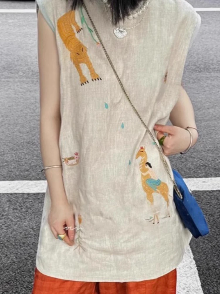 LIZAKOSHT  -  A Two-piece Set Casual Sleeveless Embroidered Top and High-waisted Wide-leg Pants Japanese Style Lazy Tanks Women's Clothing