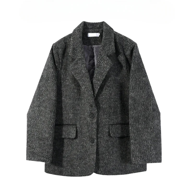 LIZAKOSHT - Advanced Gray Padded Shoulder Suit Woolen Coat for Women in Autumn and Winter, Thickened Plush, Niche Woolen Coat Trend