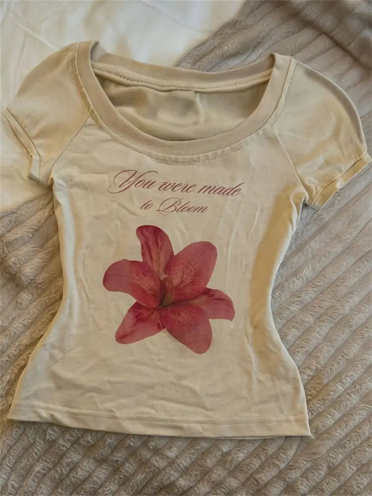 LIZAKOSHT  -  American Retro Floral Print T-shirt Y2k Hot Girl Short-sleeved T-shirt Aesthetic Clothes Fashion Trends Short Tops T Shirt Women