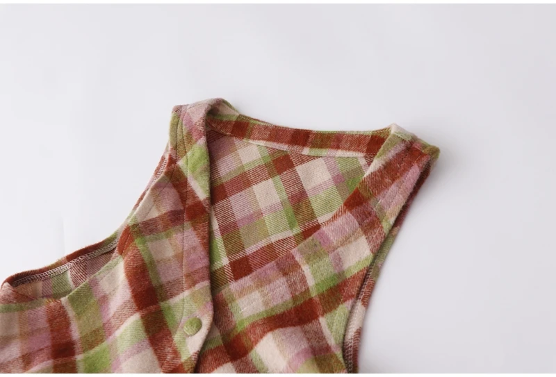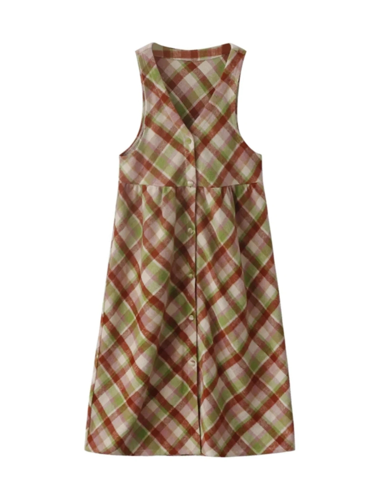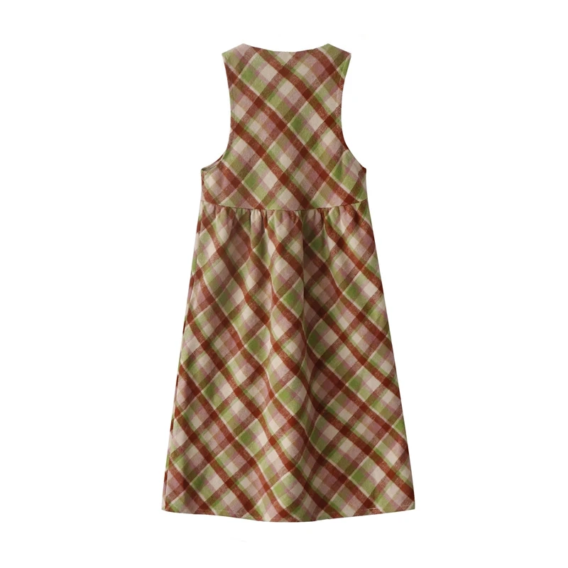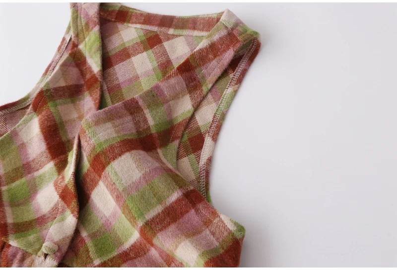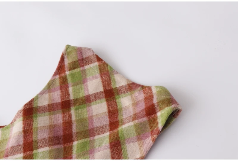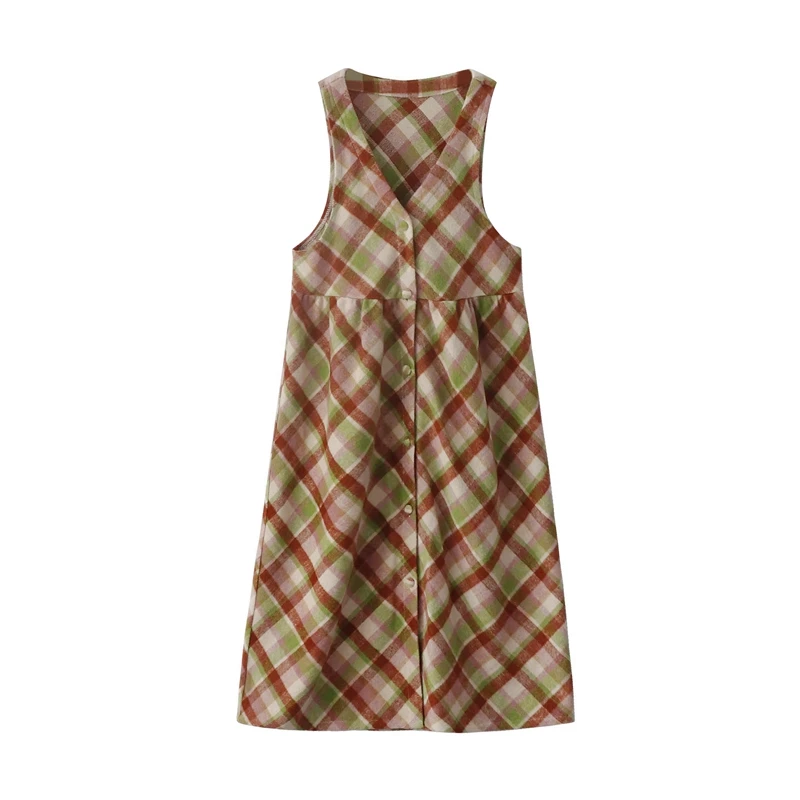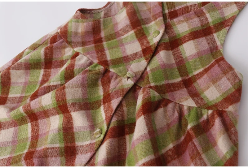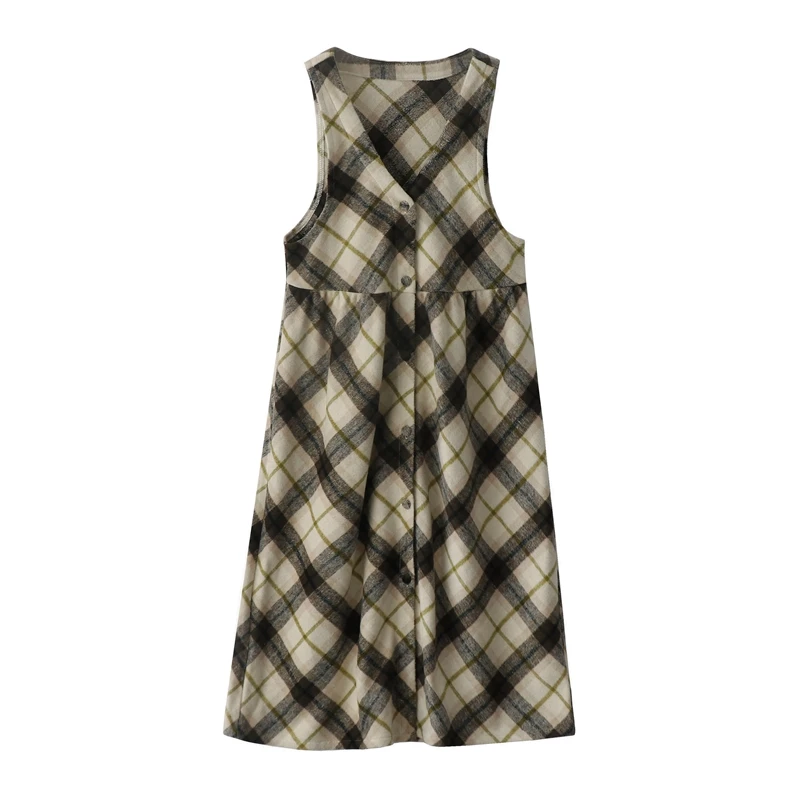LIZAKOSHT - Autumn and Winter New French Retro Plaid V-neck Woolen Vest Dresses Women's Temperament Age-reducing Mid-length All-match Dress