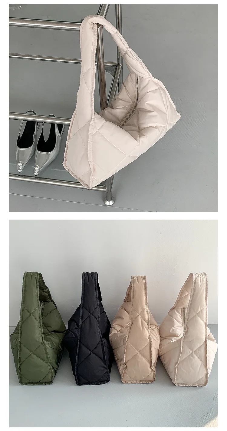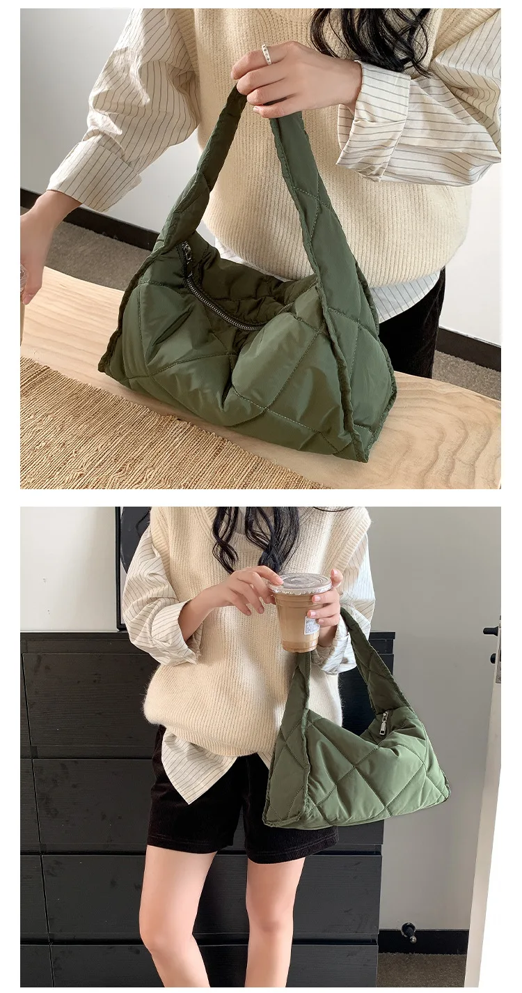 LIZAKOSHT Autumn and winter new large-capacity soft puff cloud bag nylon shoulder bag women's niche rhombic hand-held padded bag
