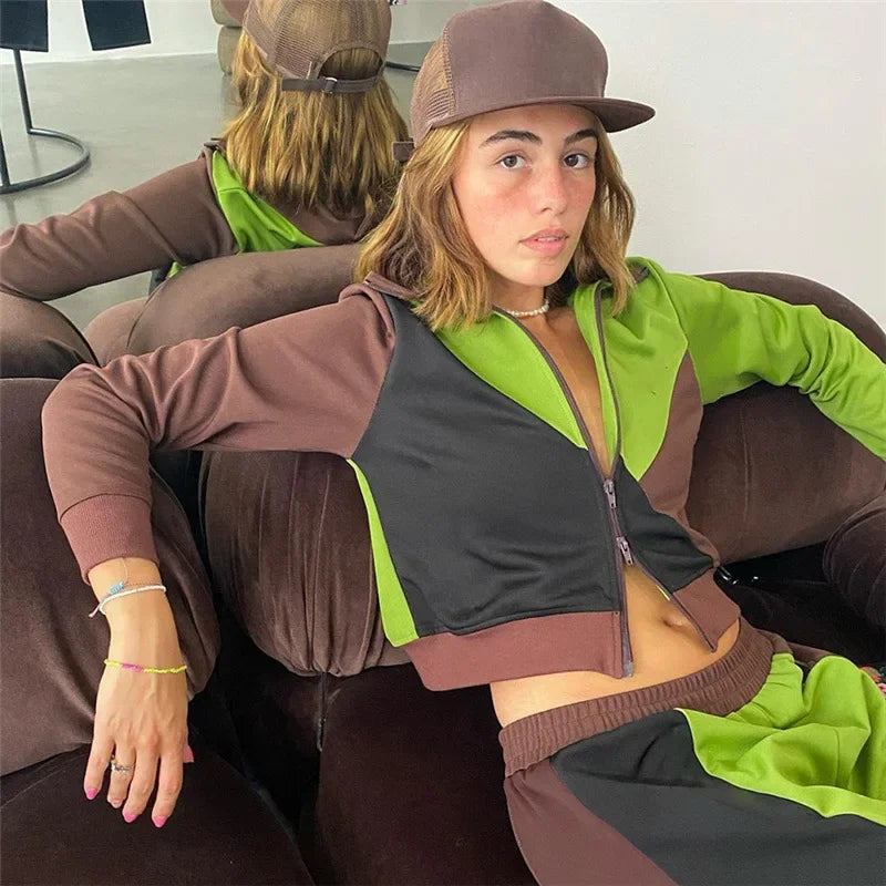 LIZAKOSHT - Autumn and Winter New Two-piece Women's Contrast Trousers Casual Suit Fashion Cardigan Casual Sports Women's Clothing