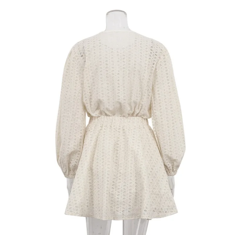 Lizakosht Autumn Elegant Hollow Out Two Piece Skirt Set Y2K INS Clothes Outfits Long Puff Sleeve Shirt Top Pleated Skirt Boho Outfits