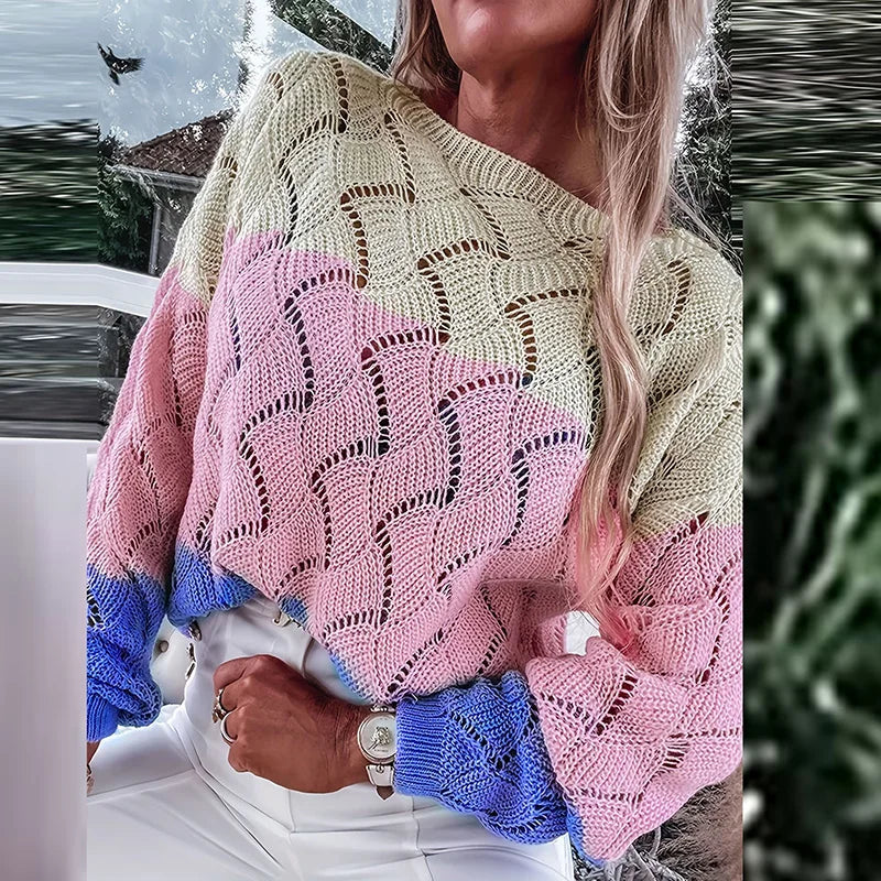 LIZAKOSHT  -  Autumn Elegant O-neck Pullover Sweaters Fashion Color Splicing Hot Sale Knitted Top Winter Women Casual Long Sleeve Loose Jumper