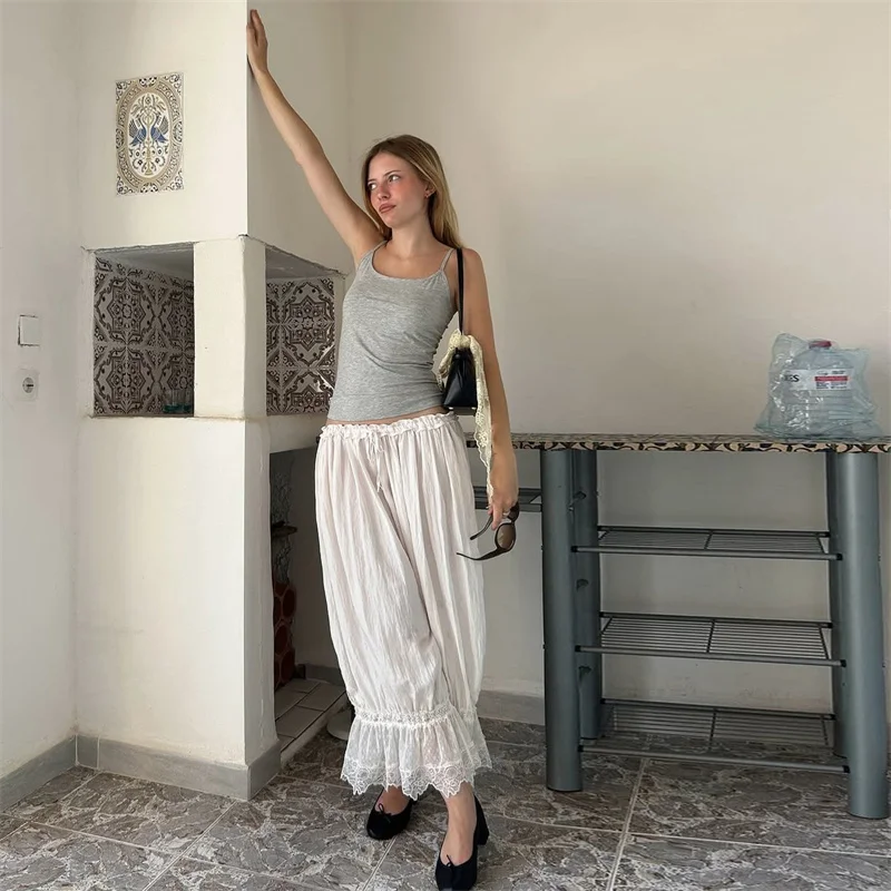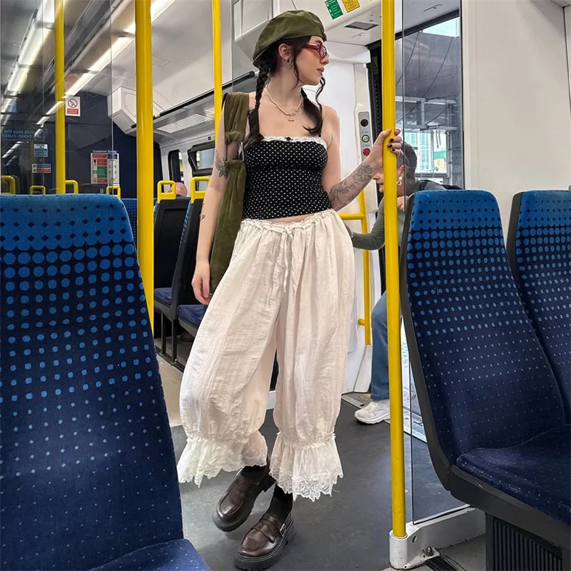 LIZAKOSHT  -  Autumn Lace Patchwork Casual Long Pants For Women Fashion Ruched Sexy Elastic Lace-up Loose Long Pants Female Outfits
