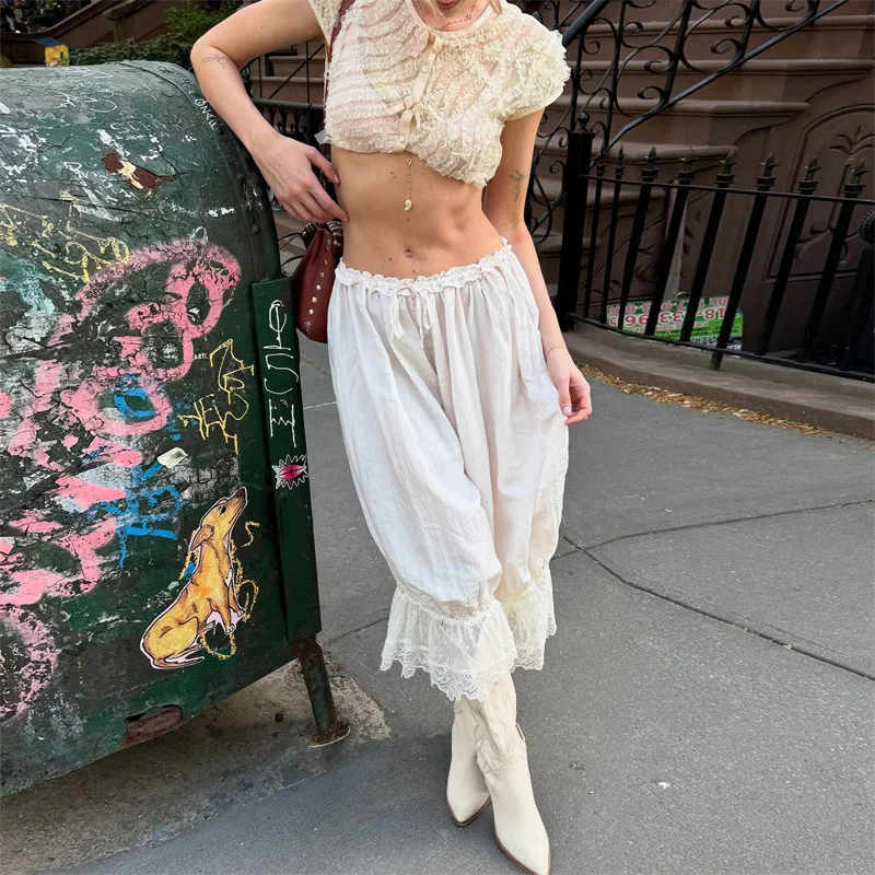 LIZAKOSHT - Autumn Lace Patchwork Casual Long Pants For Women Fashion Ruched Sexy Elastic Lace-up Loose Long Pants Female Outfits