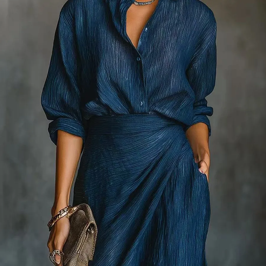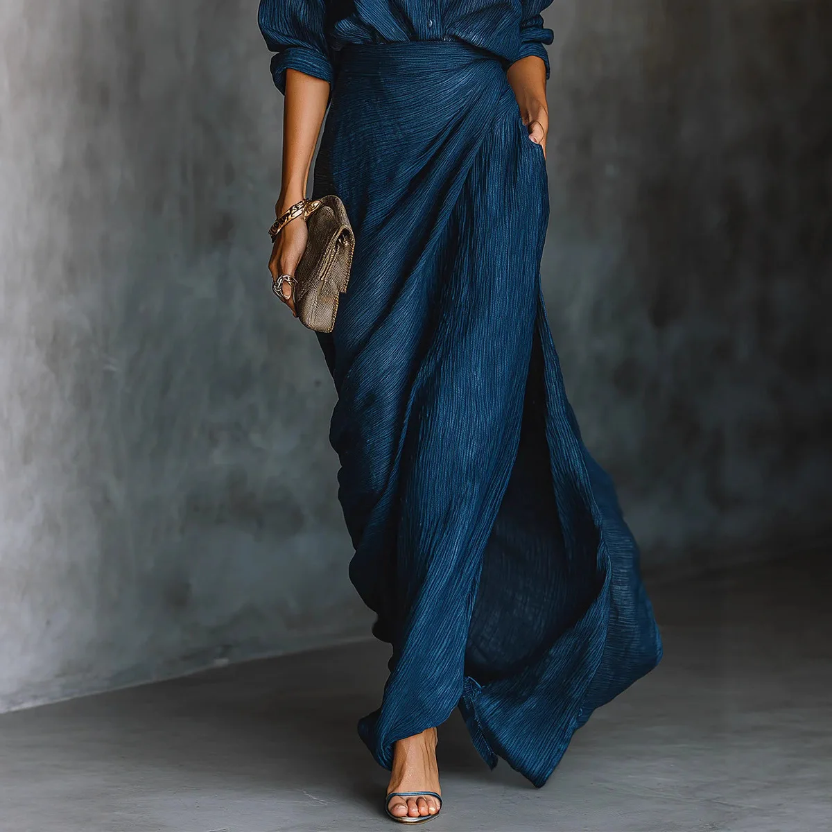LIZAKOSHT  -  Autumn Long Sleeve Cardigan Top +Maxi Skirts 2 Pieces Sets Europe Americ Solid Elegant Simple Suit Fashion Woman Outfits
