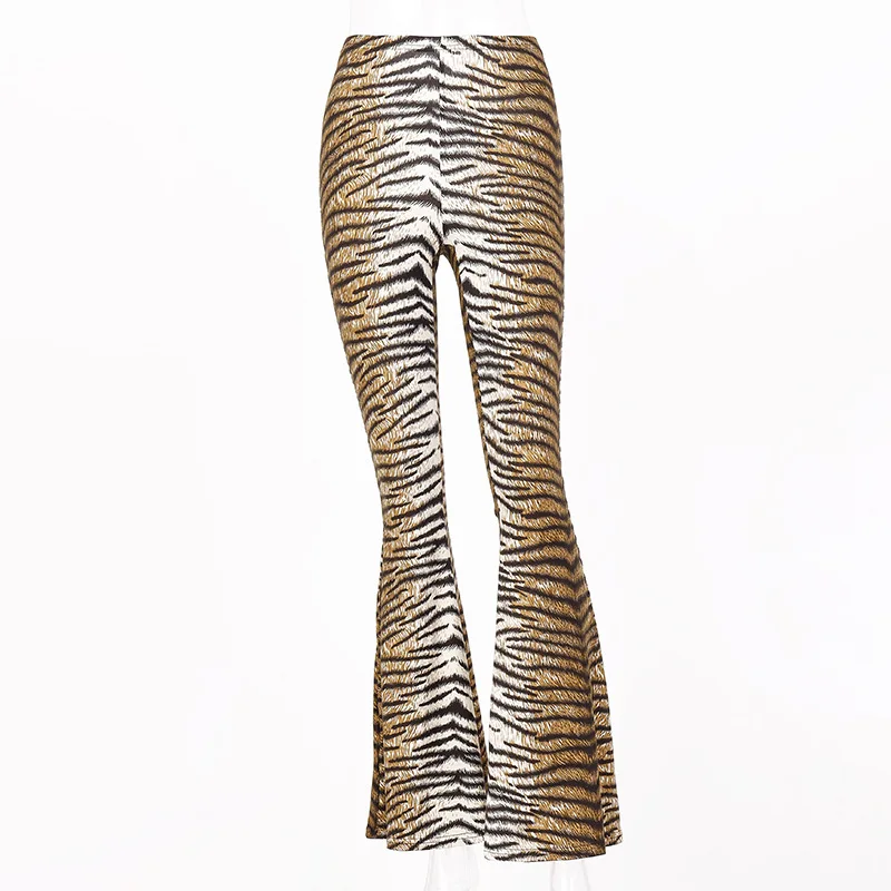 LIZAKOSHT - Autumn New Women's Elastic Waist Leopard Print flared trousers Fashion High Street Trendy Casual Slimming Pants