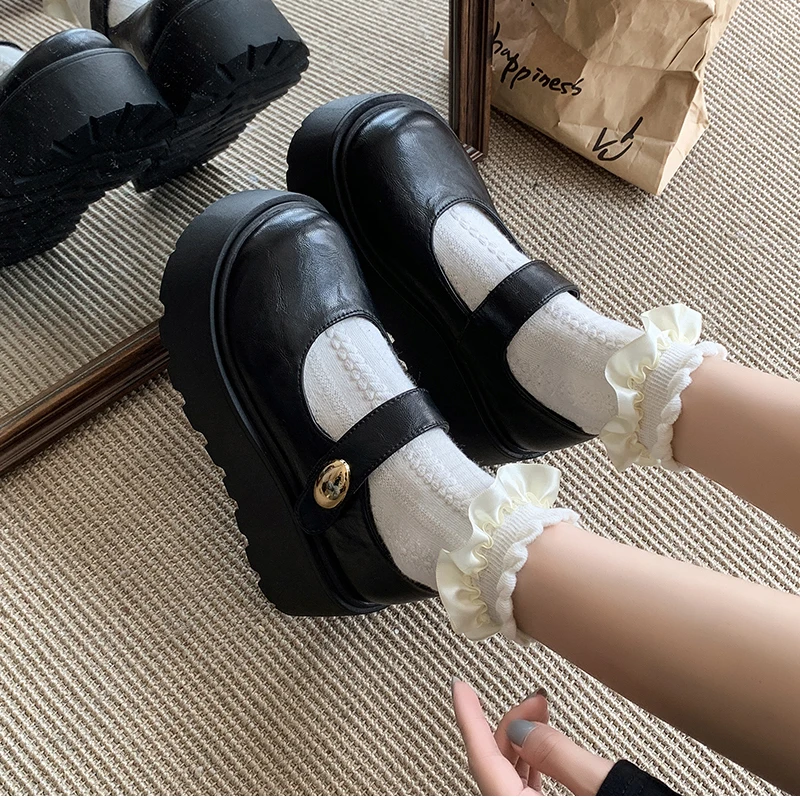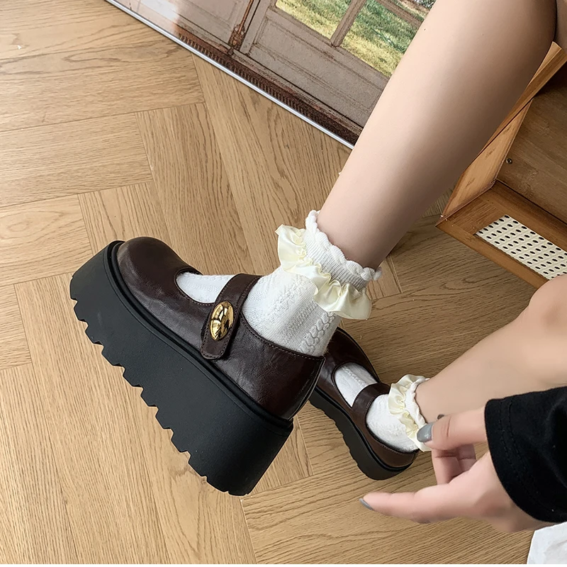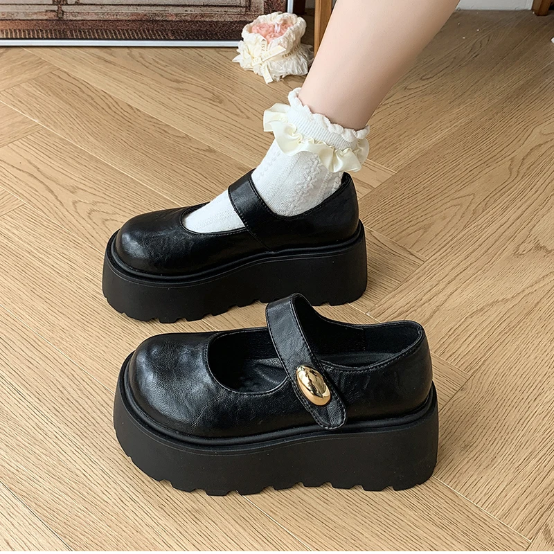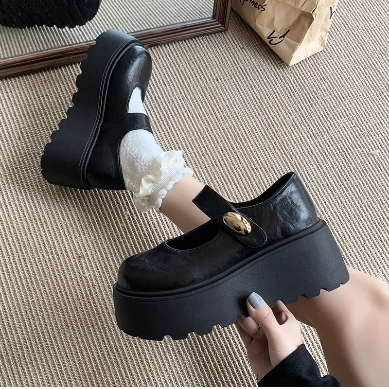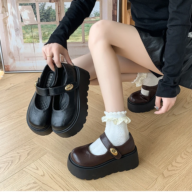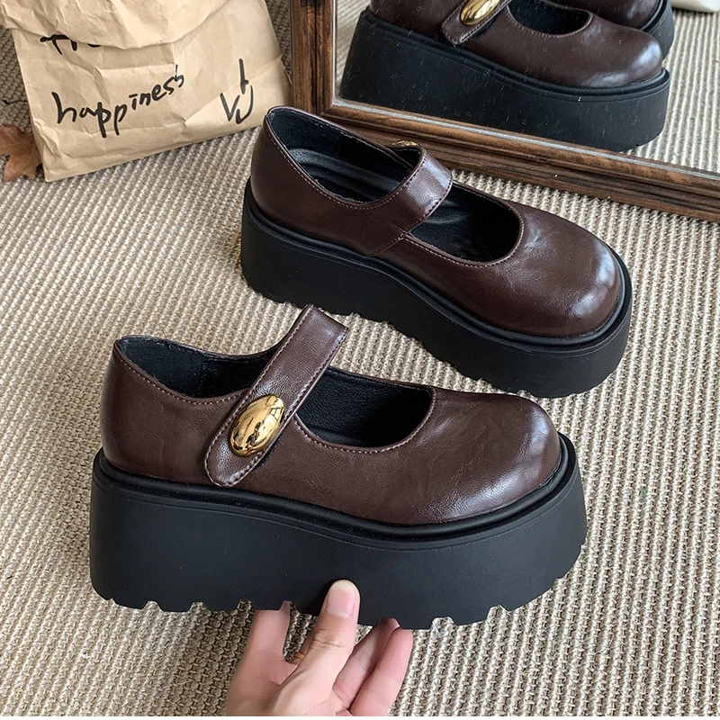 LIZAKOSHT - Autumn Vintage Platform Women Mary Jane Shoes Fashion Outdoor Stripper Shoes Ladies Thick High Heels jk Leather Pumps