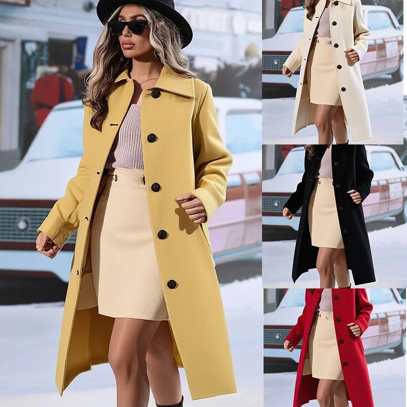 LIZAKOSHT  -  Autumn Winter New Solid Color Straight Commute Jacket Elegant Lady Single Breasted Outwear Fashion Lapel Long Sleeve Wollen Coat