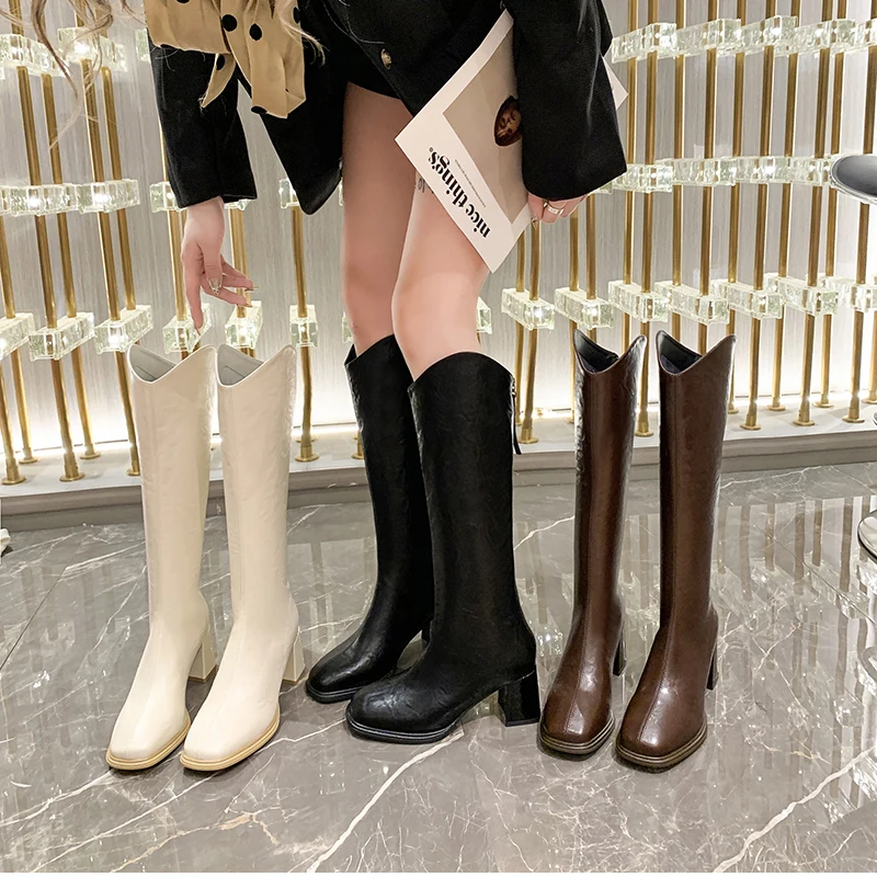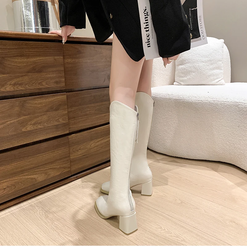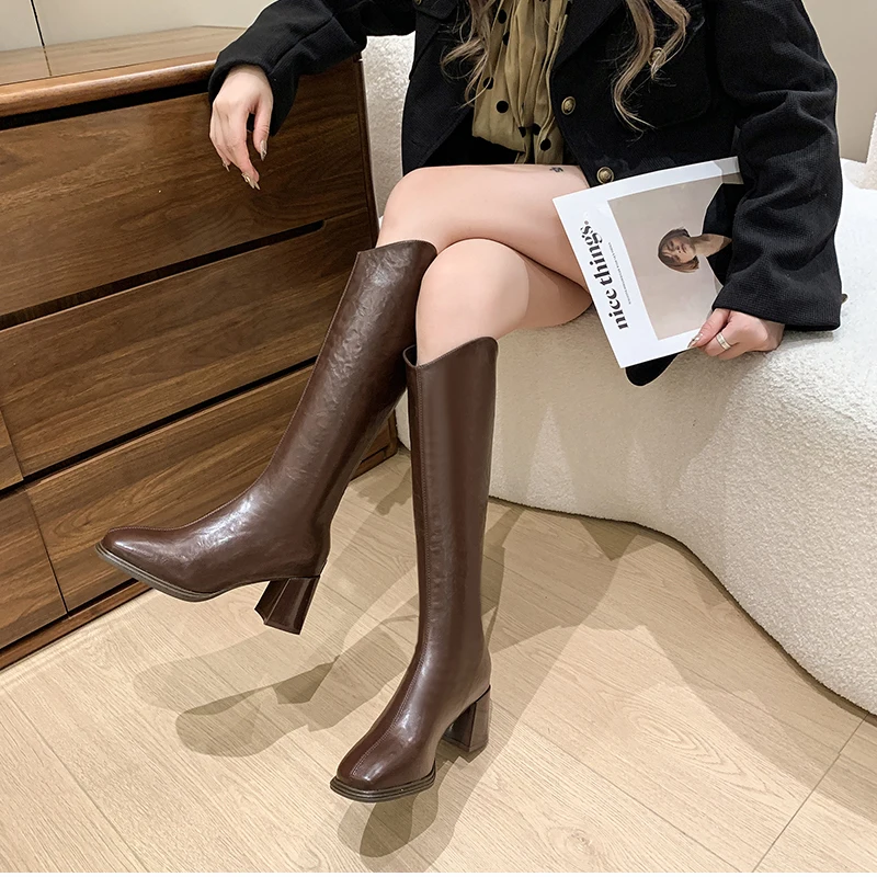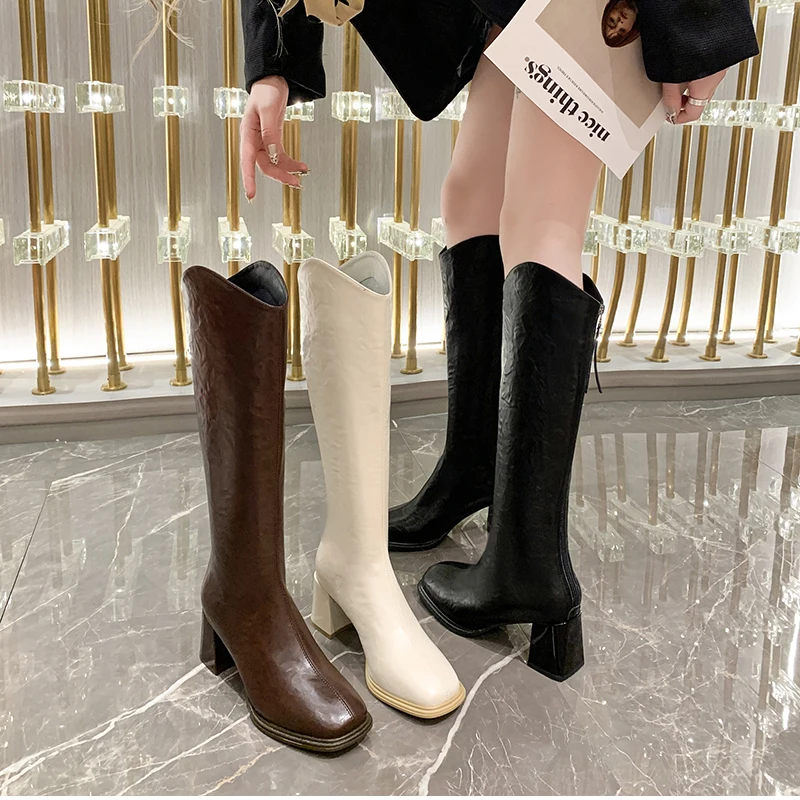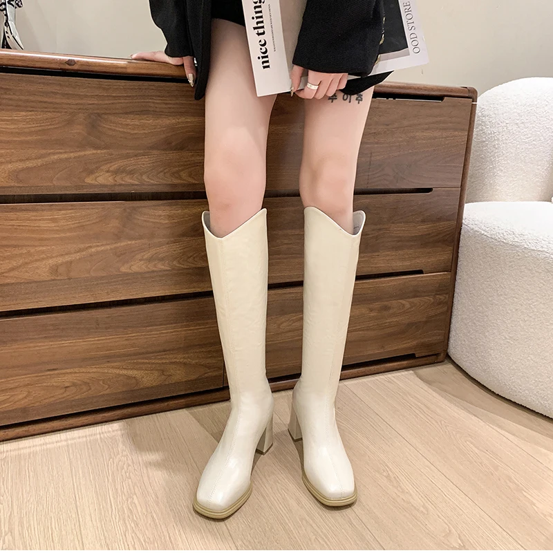 LIZAKOSHT - Autumn Winter Thick High Heels Women Knee High Boots Fashion Stretch Slim Modern Long Botas Para Mujer