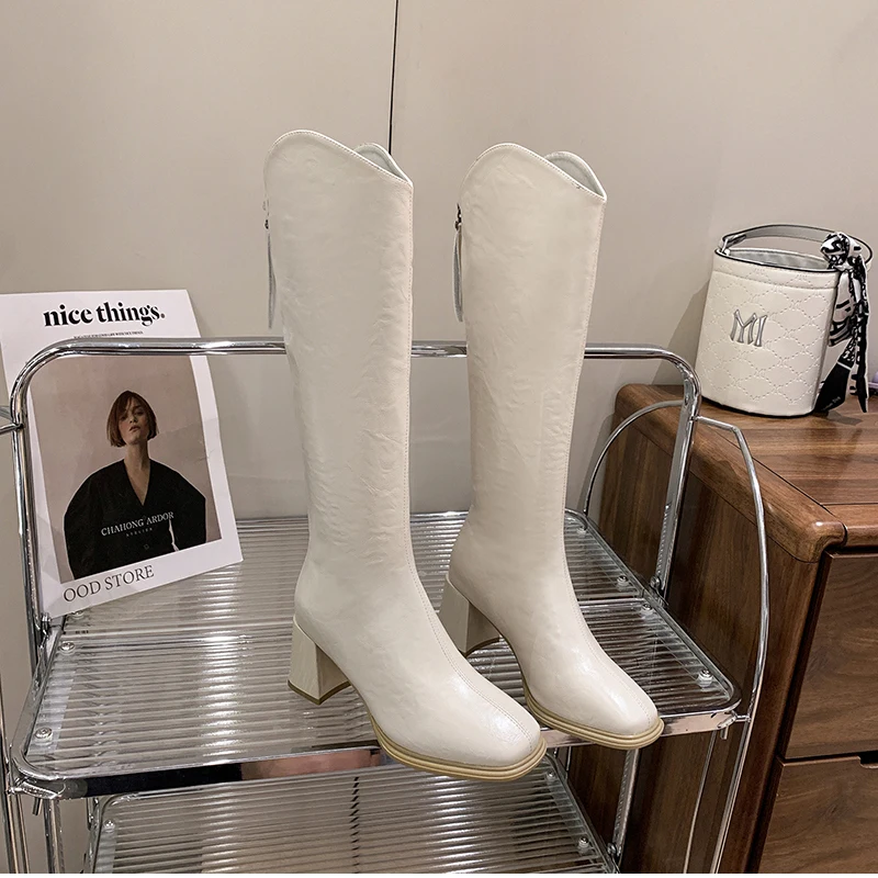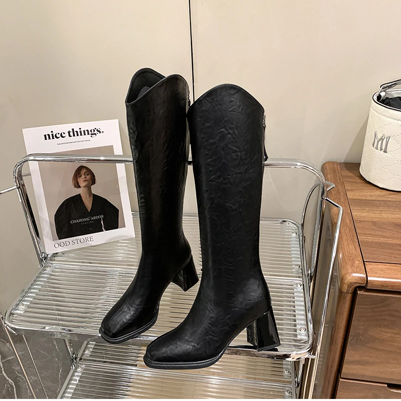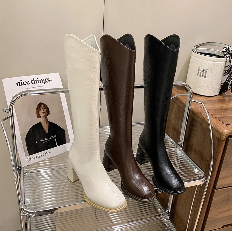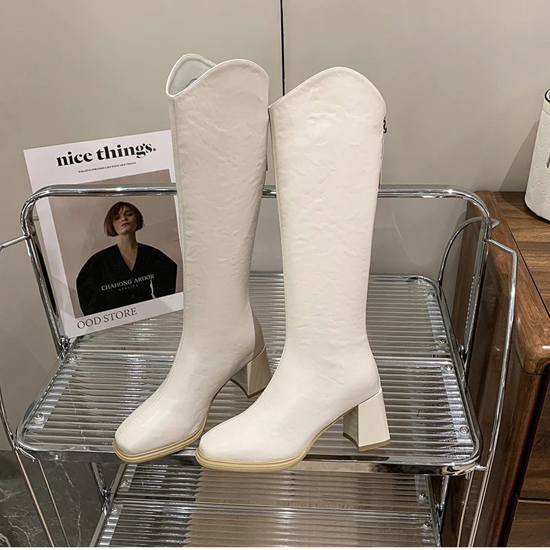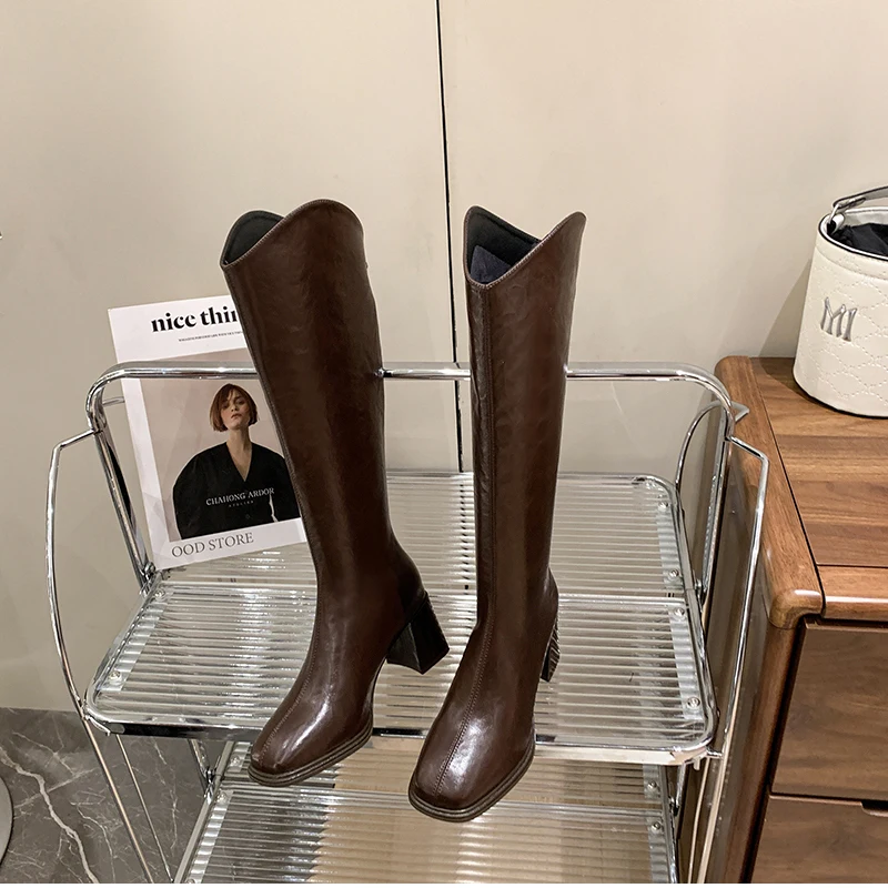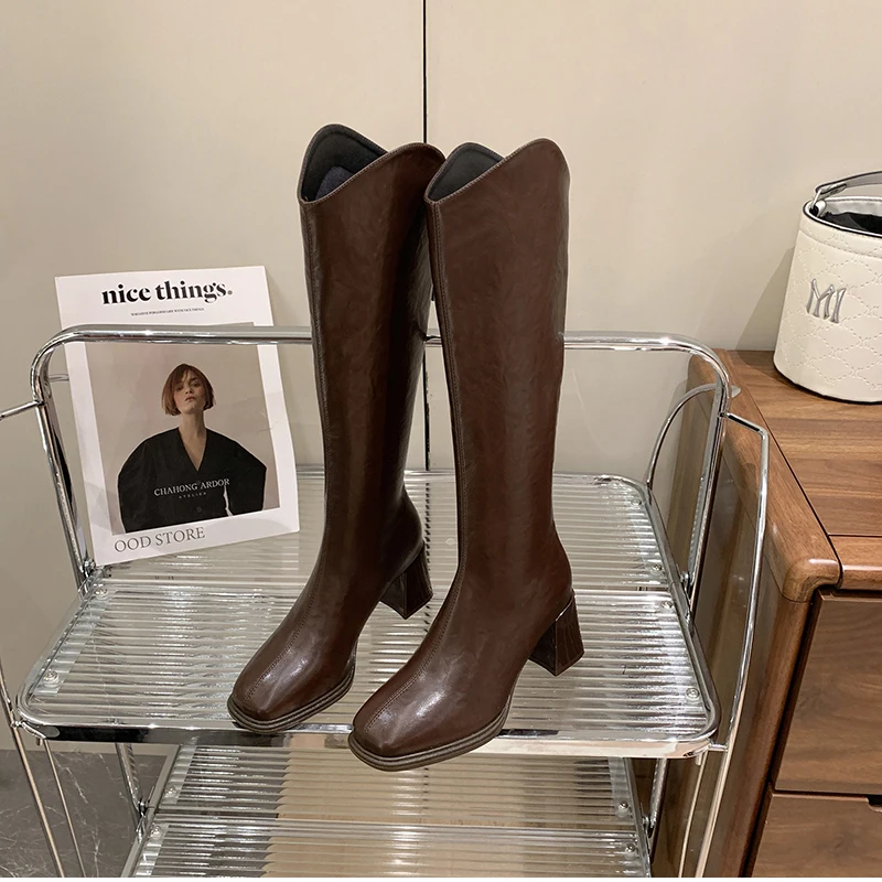 LIZAKOSHT - Autumn Winter Thick High Heels Women Knee High Boots Fashion Stretch Slim Modern Long Botas Para Mujer