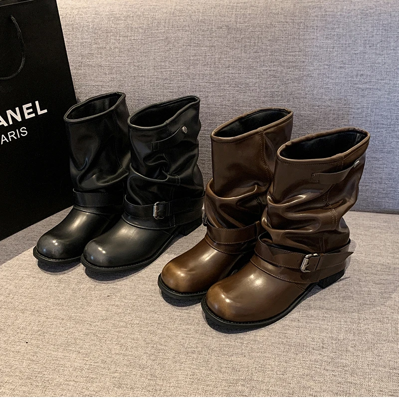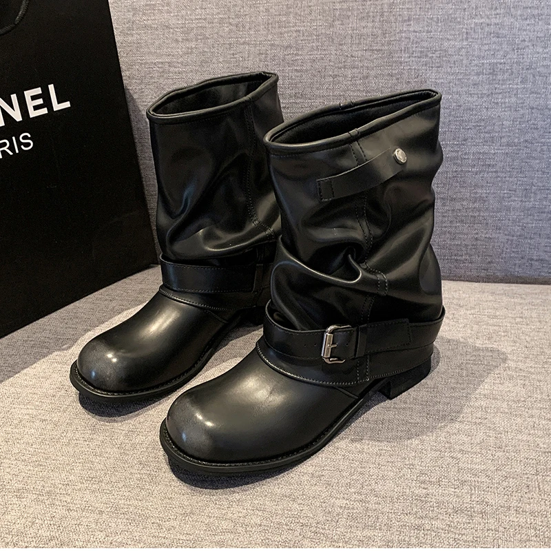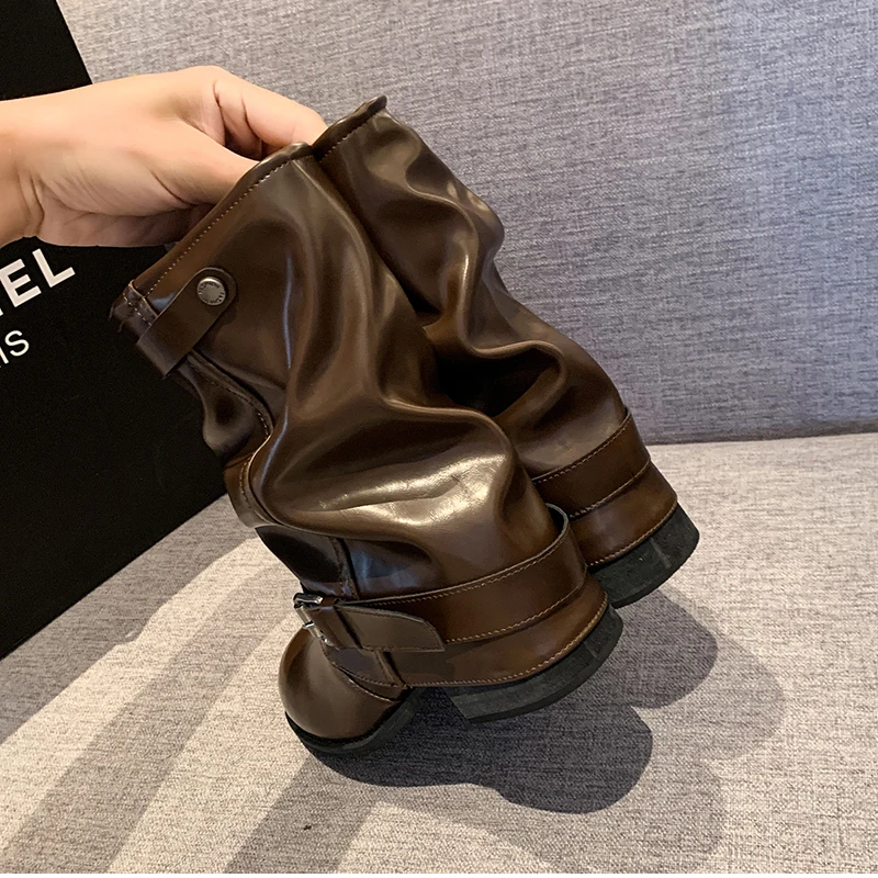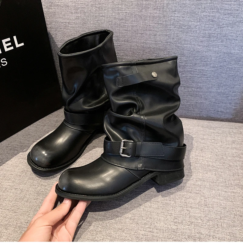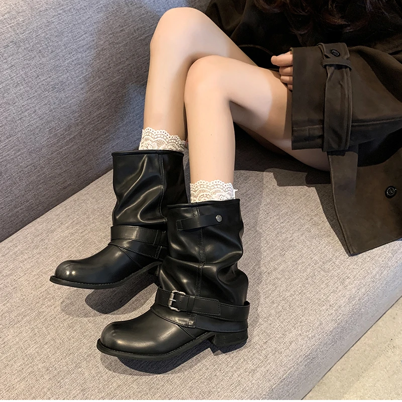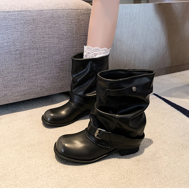 LIZAKOSHT - Autumn Winter Women Western Ankle Boots Fashion Belt Buckle Thick Heel Shoes Ladies Elegant Party Dress Short Booties