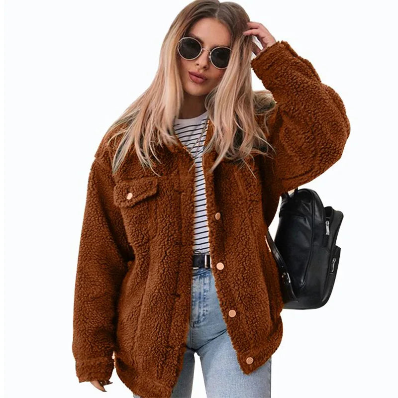 Lizakosht Autumn Winter Women's New Faux Lamb Wool Camel Warm Jacket Soft Plush Fur Tops