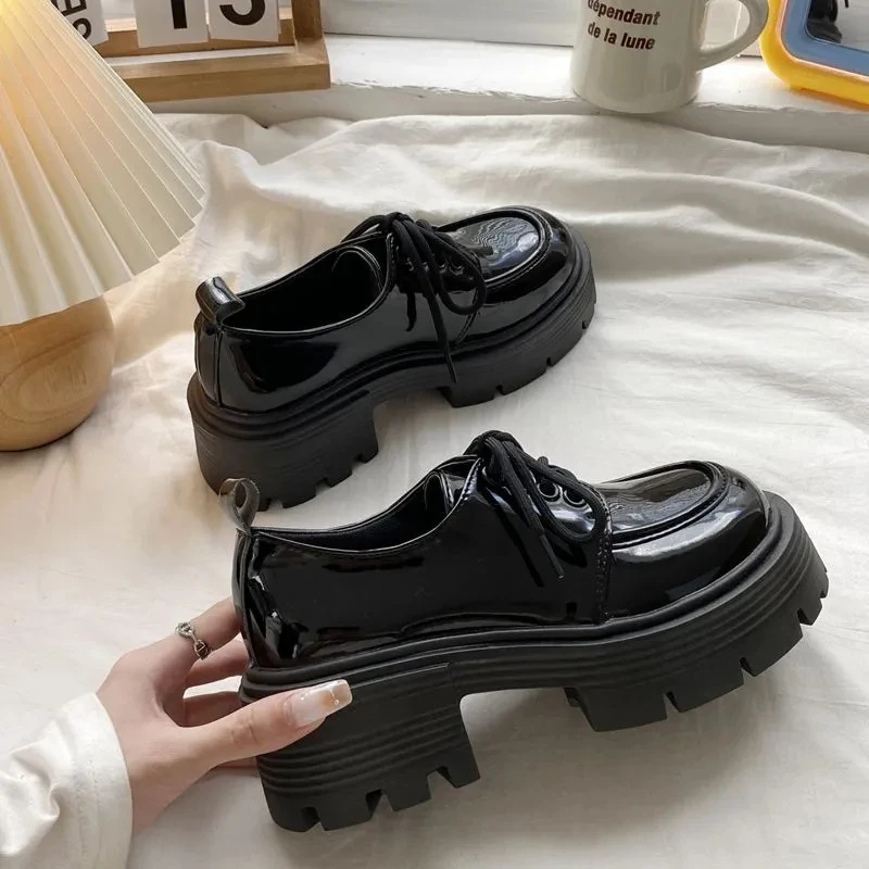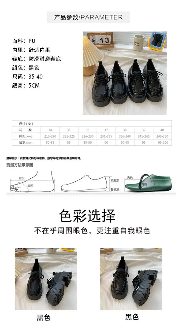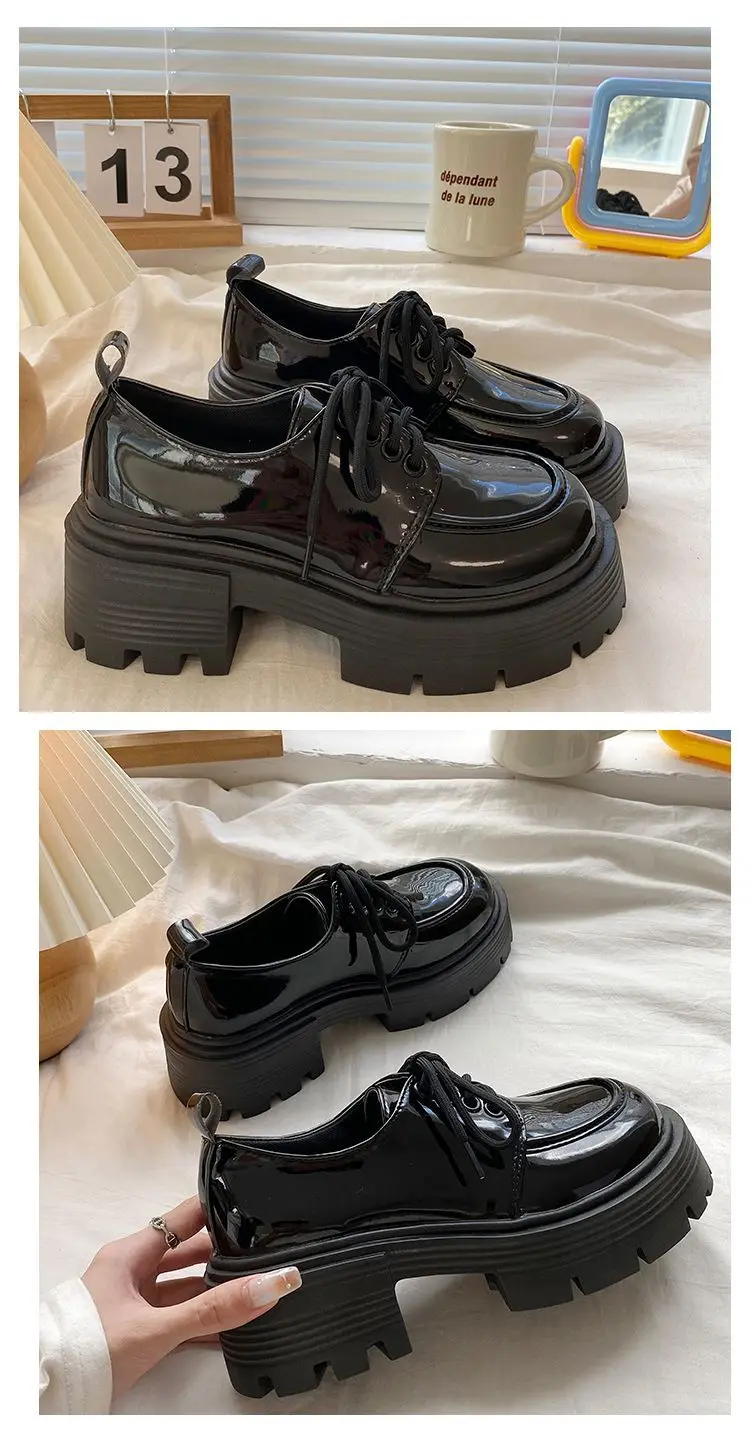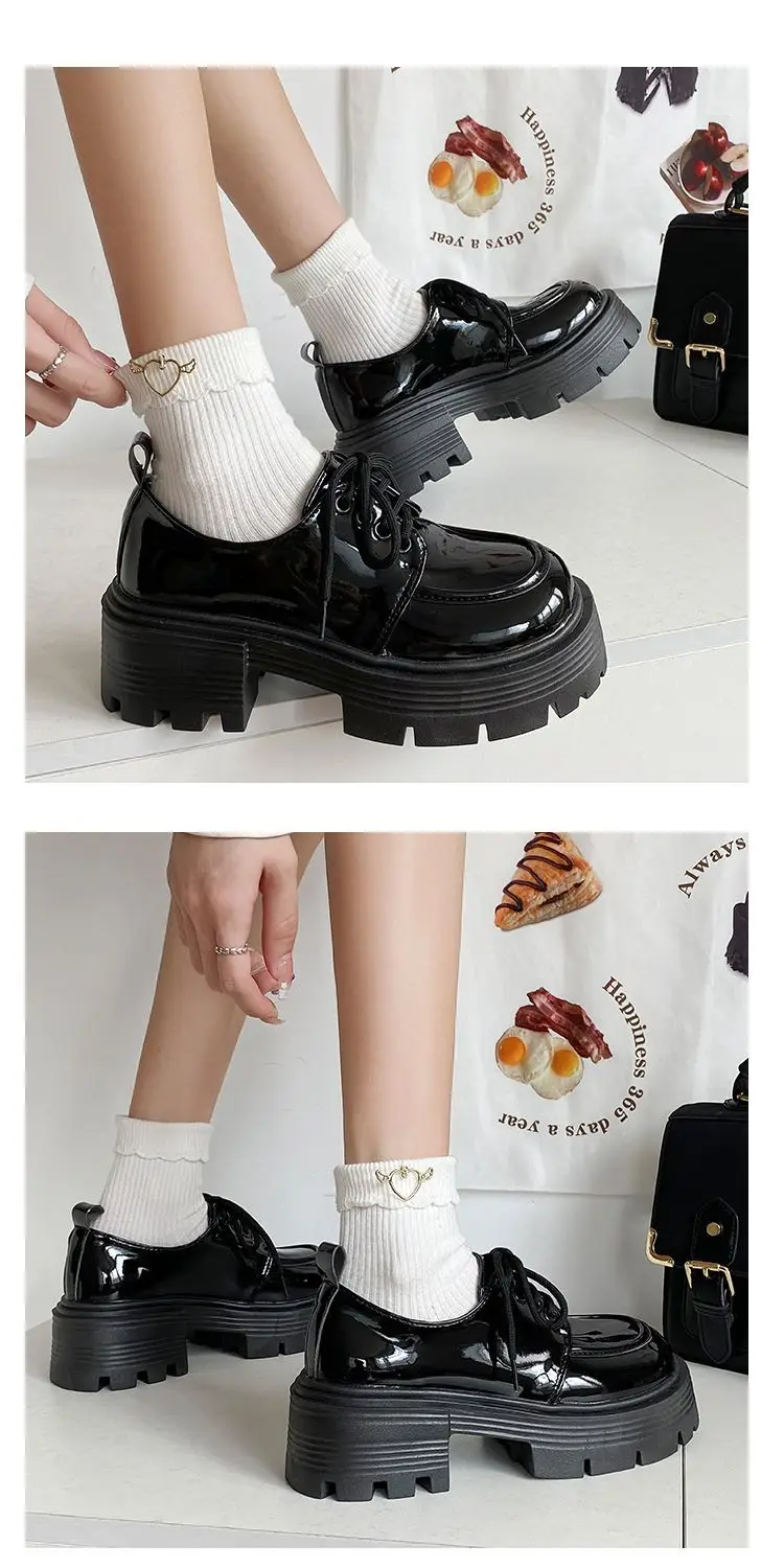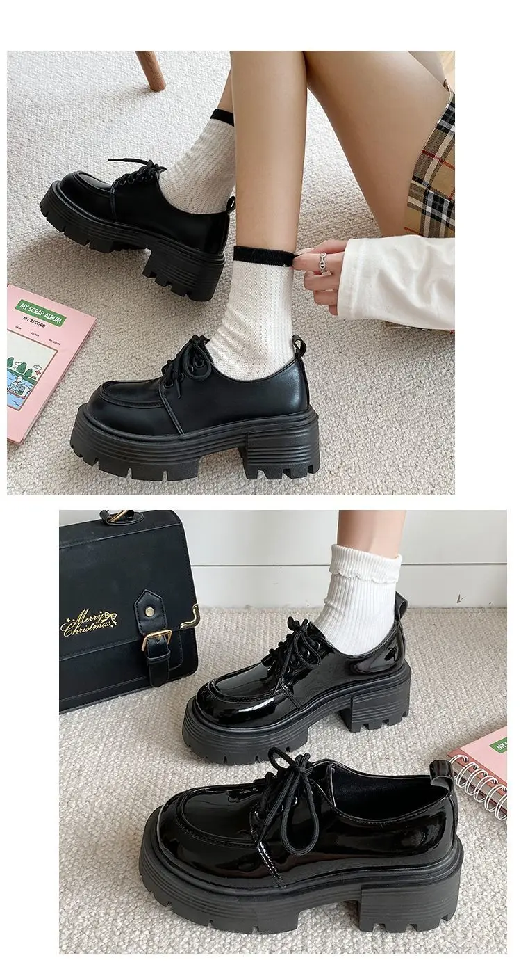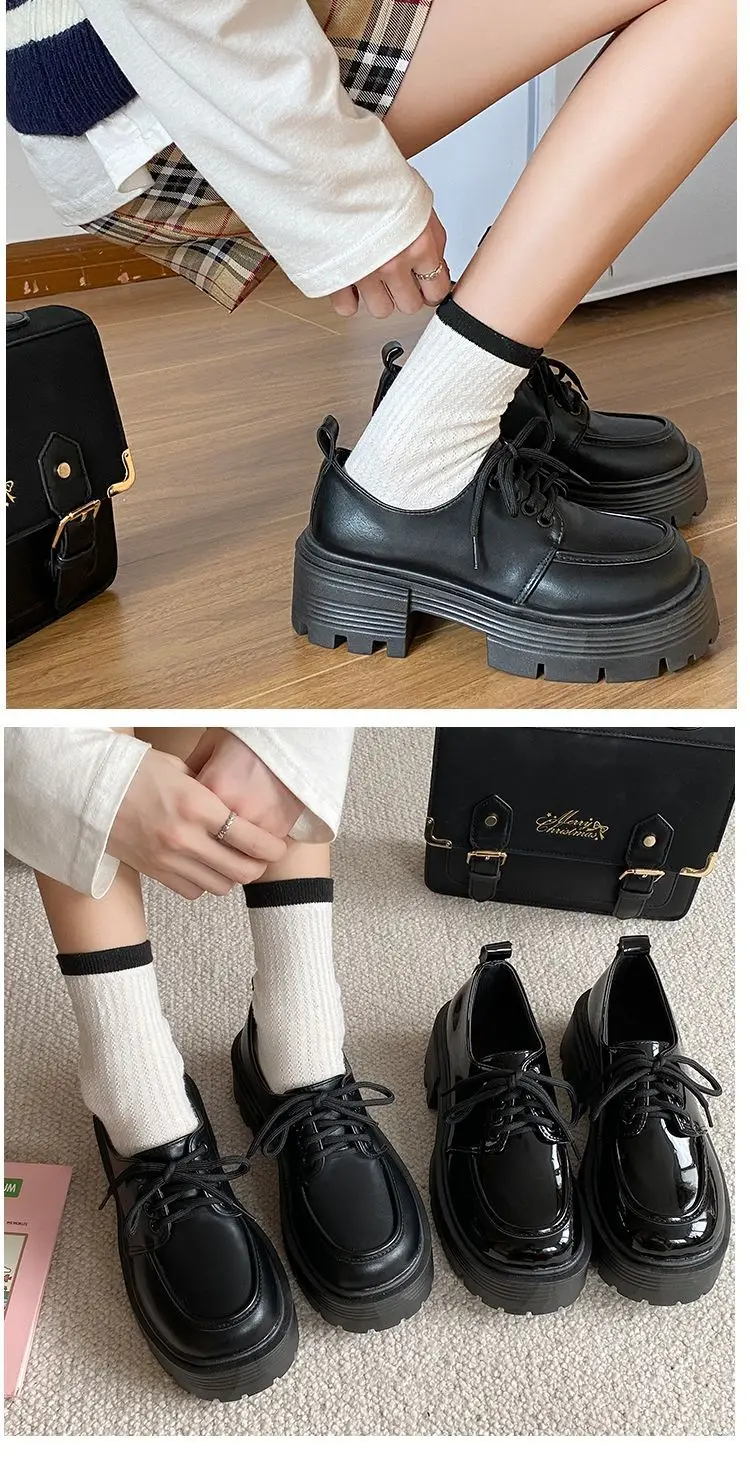 LIZAKOSHT - Autumn Women Black Platform Basic Mary Jane Shoes Flats Clogs Prepppy Style Leather Shoes British Style Lace Up Pumps Shoes