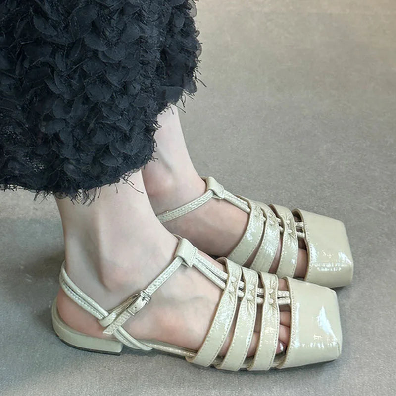 LIZAKOSHT - Autumn Women Sandal Shoes Fashion Ankle Strap Ladies Casual Dress Slingback Shoes Flat Heel Close Toe Boat Shoes New Woman