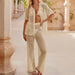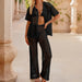 LIZAKOSHT  -  Beach Knitted Button Lapel Long Sleeve Blouse Tops+Pant Set Fashion Flip Collar Vacation Outfits 2025 Solid See-through Suit