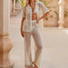 LIZAKOSHT - Beach Knitted Button Lapel Long Sleeve Blouse Tops+Pant Set Fashion Flip Collar Vacation Outfits 2025 Solid See-through Suit
